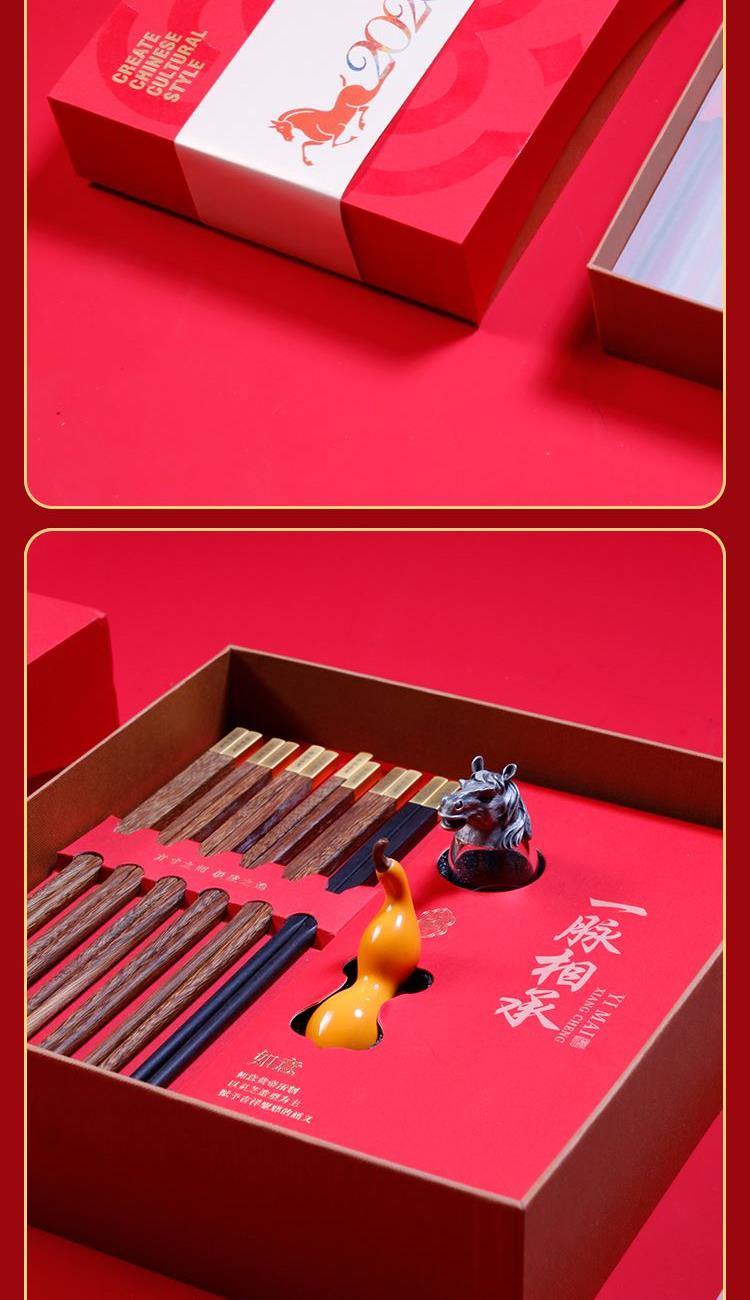 一脉相承贺岁红木筷福禄餐具礼盒创意礼品年会礼品