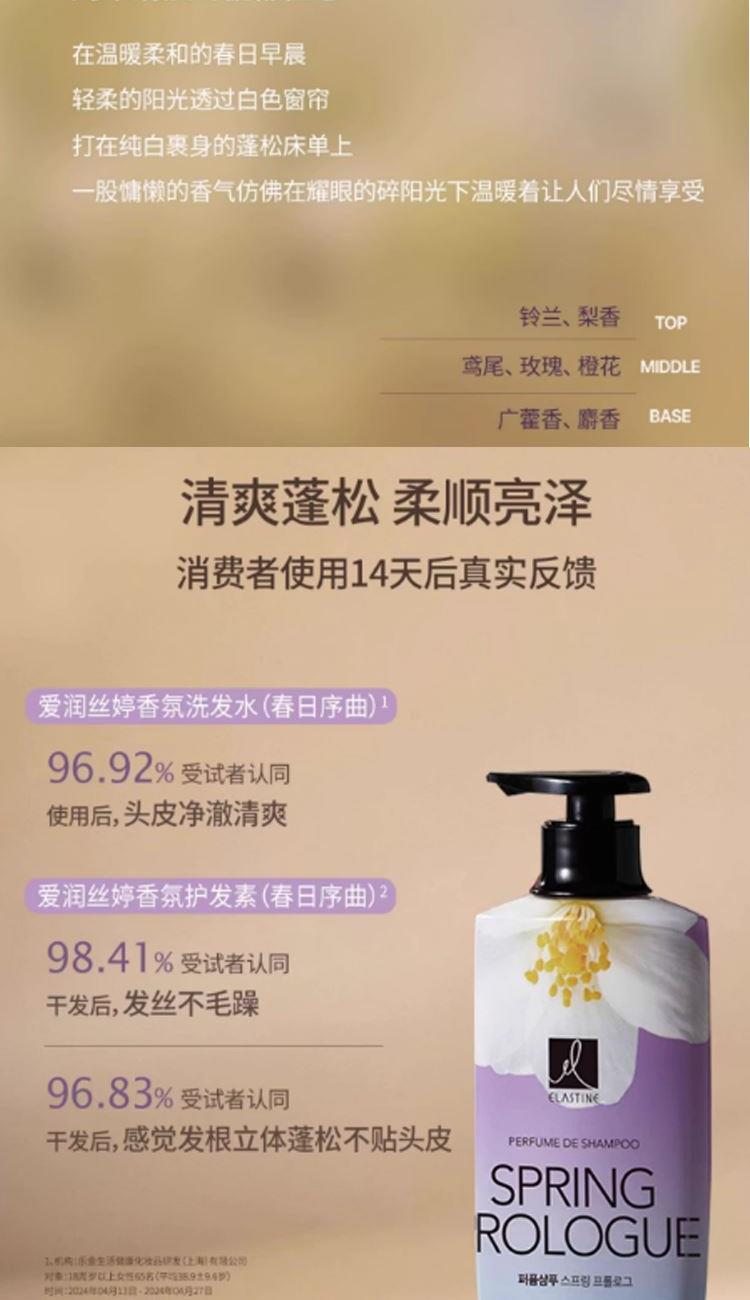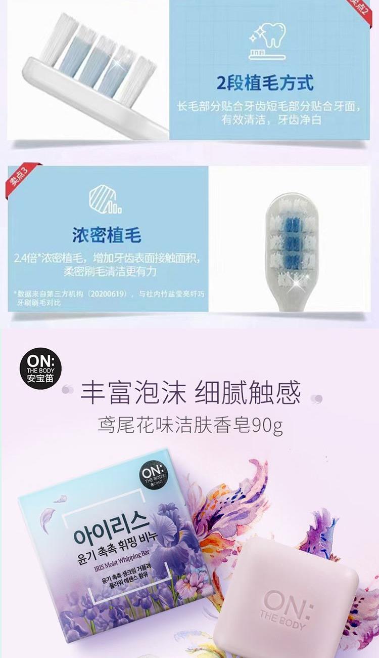 爱润丝婷香氛洗发水(春日序曲)600ml*1瓶 竹盐喜马拉雅粉盐益护清新牙膏(沁爽薄荷)100g*2支 安宝笛鸢尾花味香皂90g*2块 菲诗小铺微米净透香氛沐浴露(浪漫邂逅)500ml*1瓶 安宝笛萌趣净透樱桃泡沫洁面膏150g*1支 竹盐小苏打净白牙刷 成人*2支