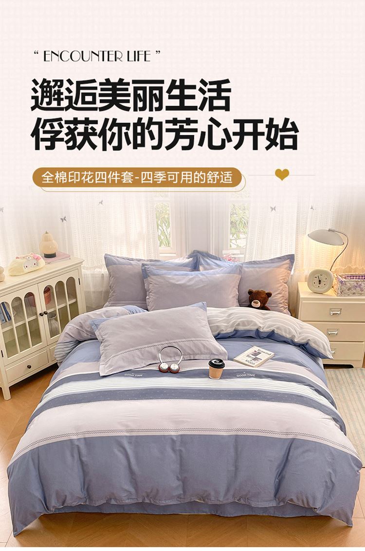 洁丽雅纯棉四件套床上用品被套200*230cm-海纳百川