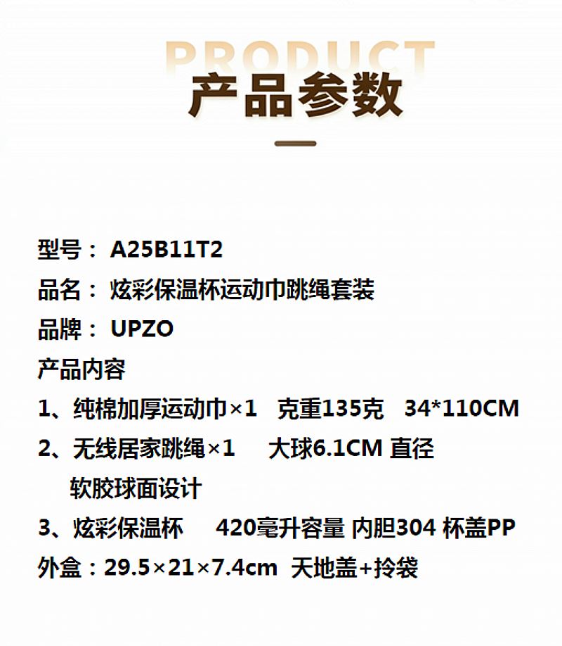 UPZO炫彩保温杯运动巾跳绳套装A25B11T2