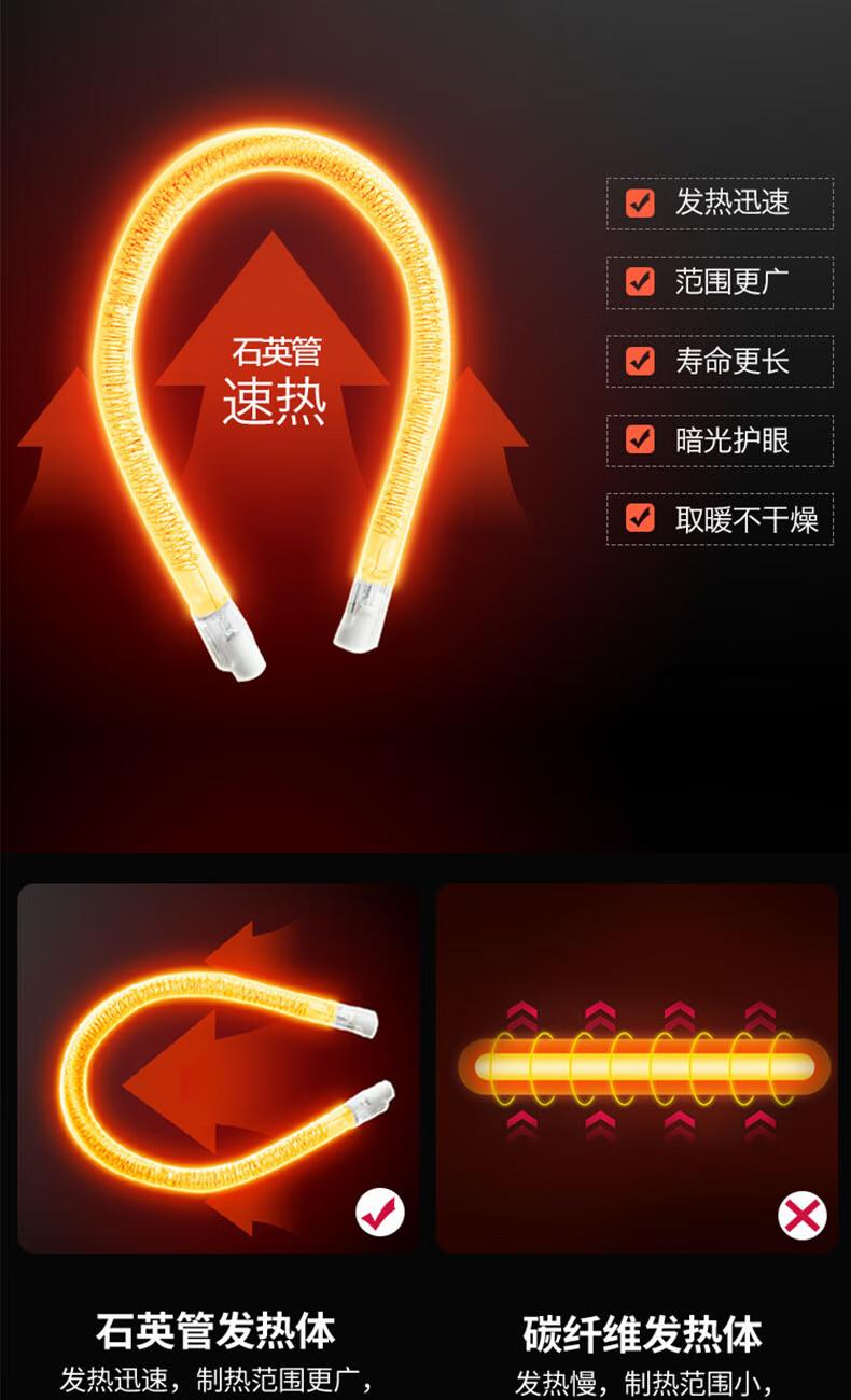 极简外观设计风格 双全网罩60根钢丝,外径304mm,内圈钢丝直径1.5mm 外圈钢丝直径2.5mm 90度俯仰,机体竖直、水平可实现单人、多人取暖 双U管发热体,持久热源 钻石晶格反射盘,柔光不伤眼 倾倒自动断电,老人小孩放心用 双圈加密网罩60根钢丝,外径304mm,内圈钢丝直径1.5mm 外圈钢丝直径2.5mm 整机无需组装,拿出就可以使用