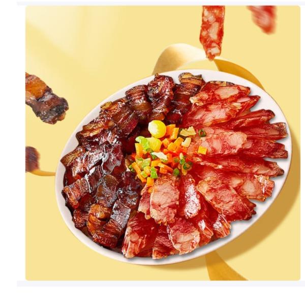 薄盐双珍腊肠礼盒 内容物/主要原料:薄盐腊肠200克,薄盐腊肉200克 产品规格:1×12×400g 产品卖点 减盐>25%,0添加味精,悦享健康; 经典腊肠+腊肉双拼组合,一盒双享; 非遗工艺,太阳能光棚生晒,口味正宗; 小礼盒包装,精致大方,心意之选;
