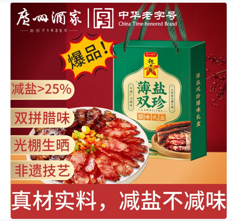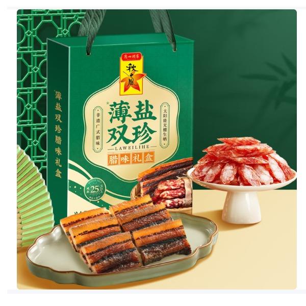 广州酒家薄盐双珍腊肠礼盒(400g)