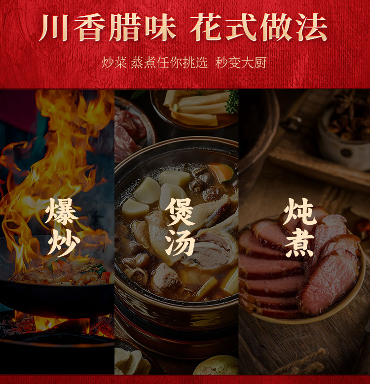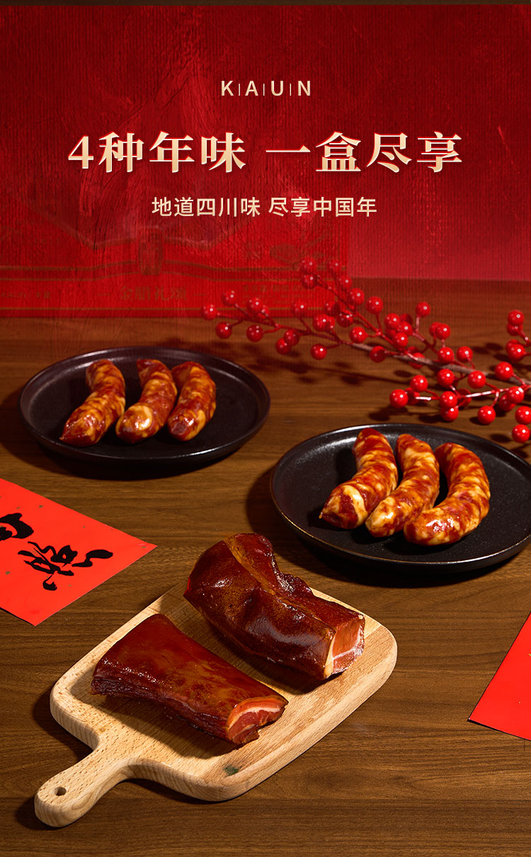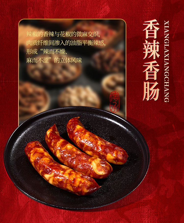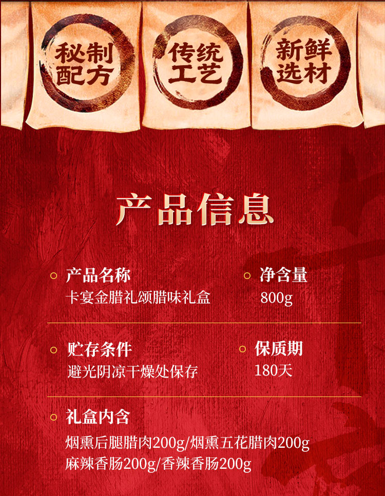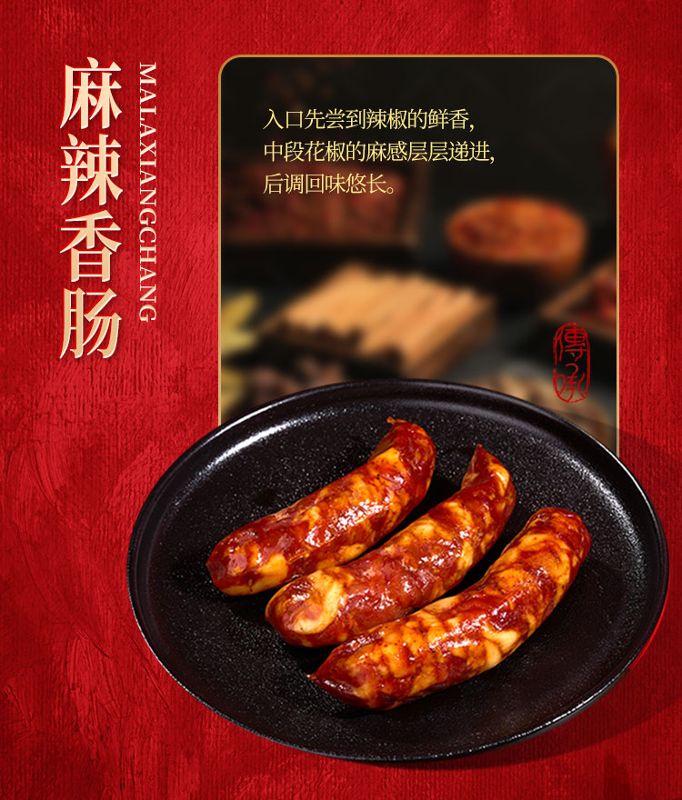 烟熏后腿腊肉200g 烟熏五花腊肉200g 麻辣香肠200g 香辣香肠200g