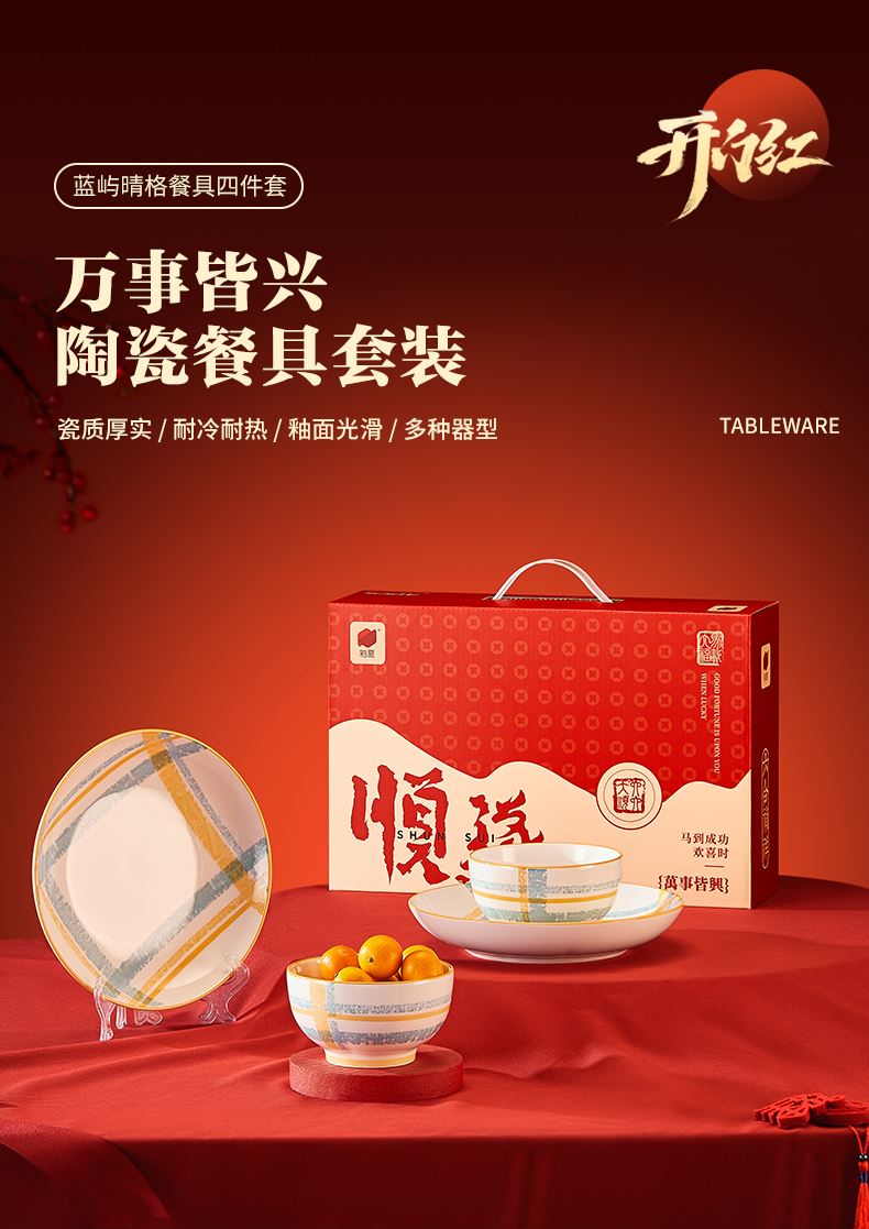 釉夏蓝屿晴格陶瓷餐具四件套Y-LY/L4开门红