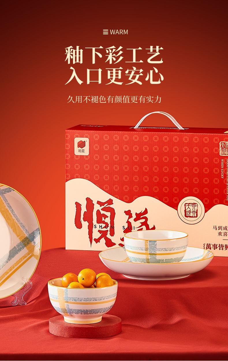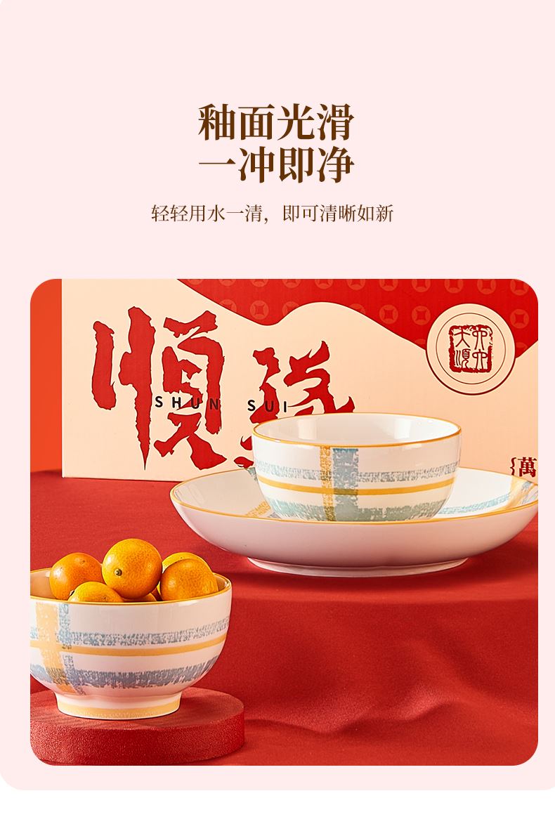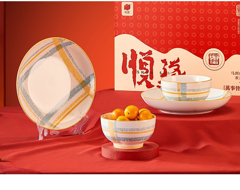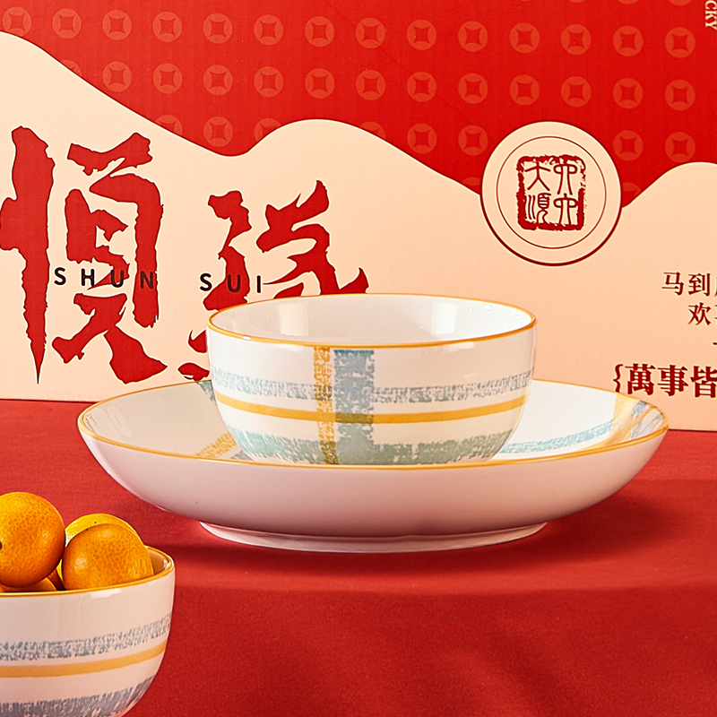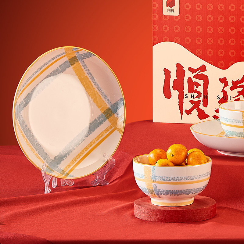 材 质: 高温瓷 产品参数:4.5英寸小碗*2、8英寸盘子*2 彩盒尺寸:350*92*234mm 外箱尺寸:48*37*49cm 产品卖点:1.厚实瓷质,隔热防烫,外观色彩清新、光洁透亮、花面细腻。2.适用于洗碗机,消毒碗柜、微波炉、冰箱等。3.釉面光滑细腻,久用不褪色,釉下彩工艺,描边碗沿,田园复古风格,底部不上釉防滑设计,防滑更平稳。4.性价比高,适合福利集采银行保险项目。