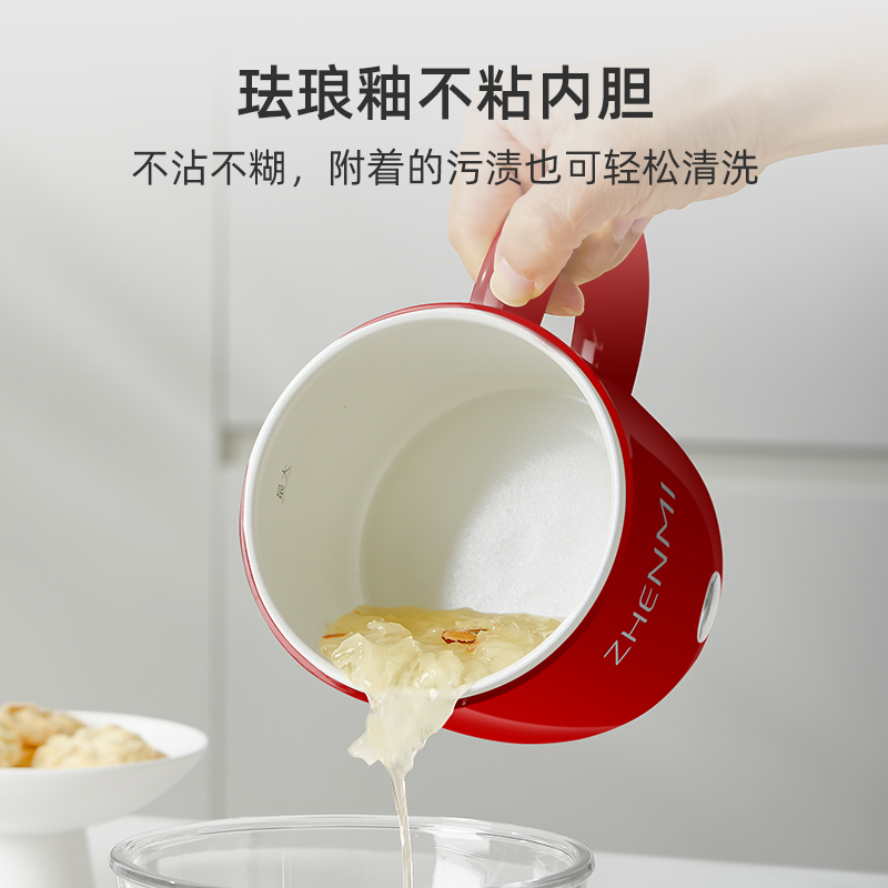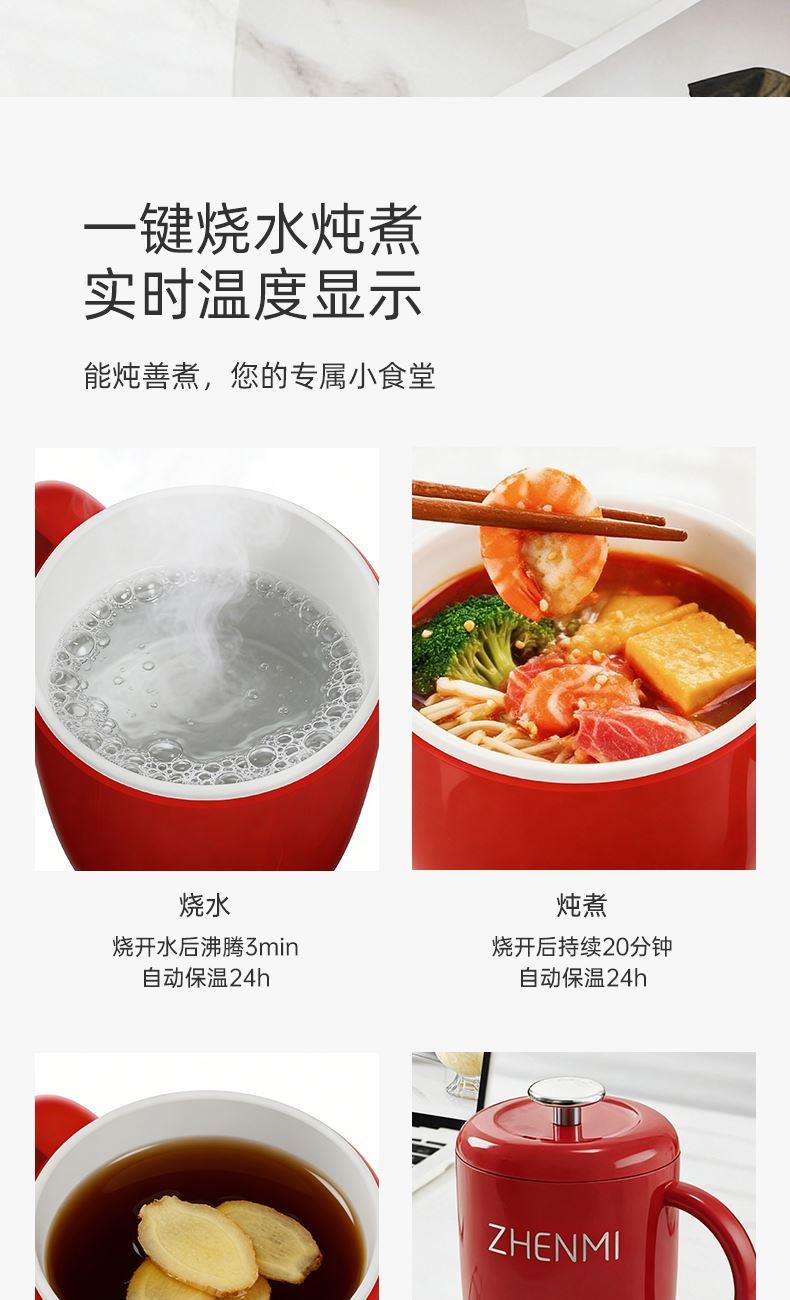 大宽口,可杯可碗; 一人食刚刚好,小巧不占地; 双层隔热,安全防烫; 食品级珐琅涂层,不水解,刷洗不掉涂层; 快速加热,几分钟烧开一杯水(模具出来实测提供数据); 4大模式随心选择,满足不同需求; 11h长效保温;