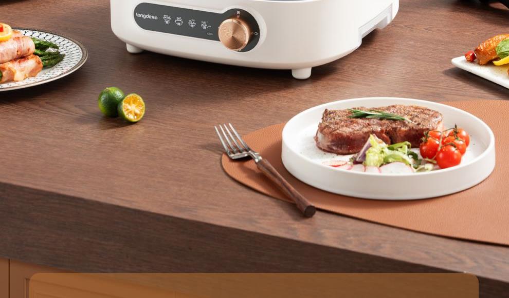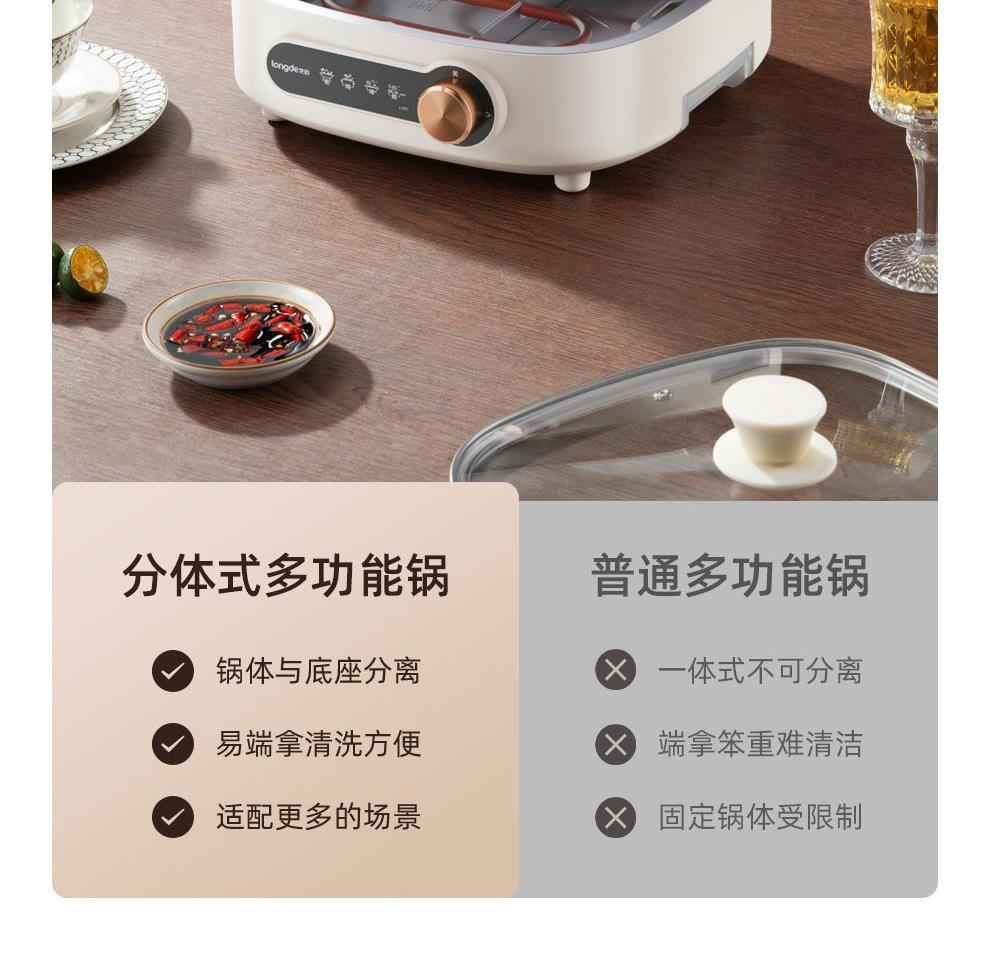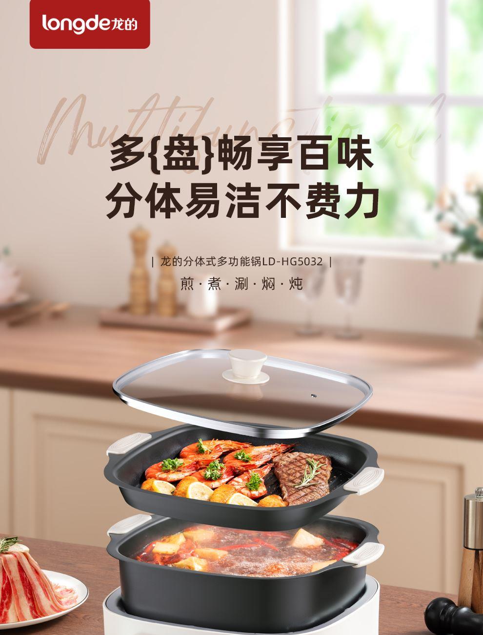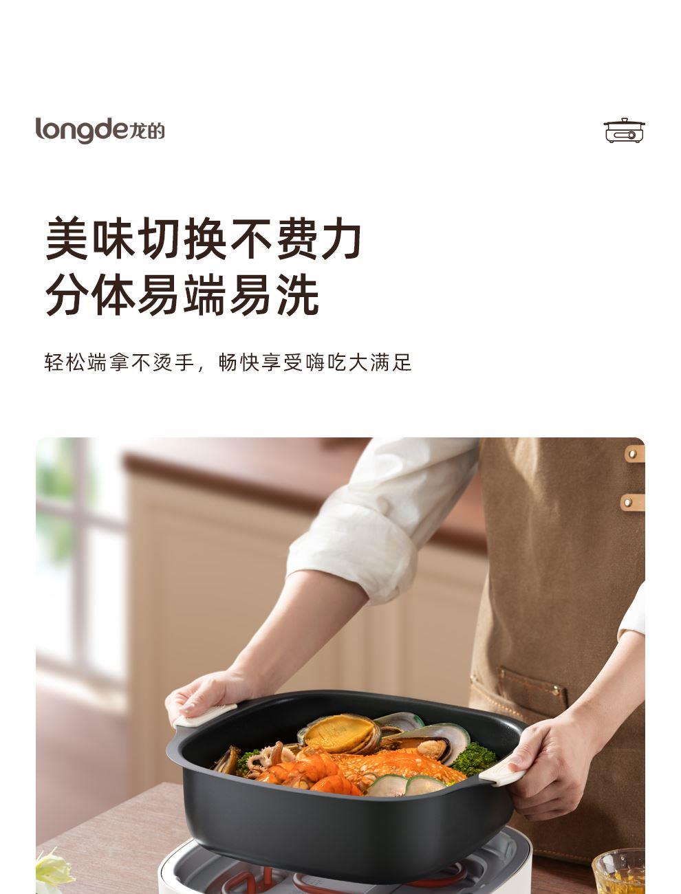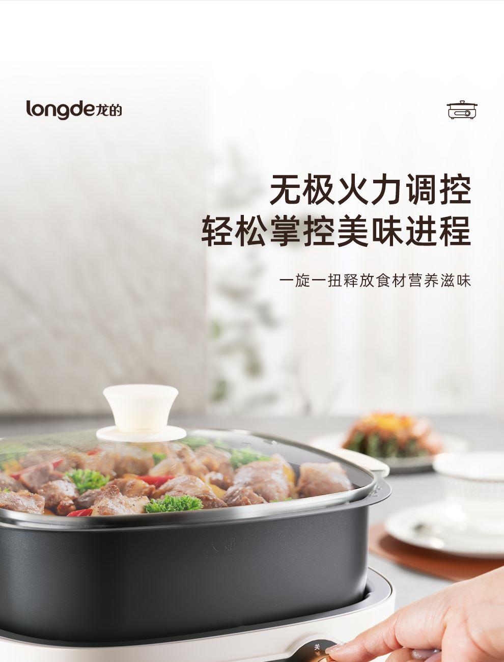 额定功率:1500W 产品容量:5.0L 额定电压:220V~ 产品频率:50Hz 产品净重:3.2kg 产品毛重:3.7kg 整箱重量:15.9kg 火锅盘、煎烤盘自由选择不粘水性涂层火锅盘/煎烤盘,不锈钢发热管导热快 可视烹饪不锈钢包边耐高温玻璃上盖 大功率无极调无极旋钮温控,调和不同需求 多重安全防护优质温控器,干烧保护