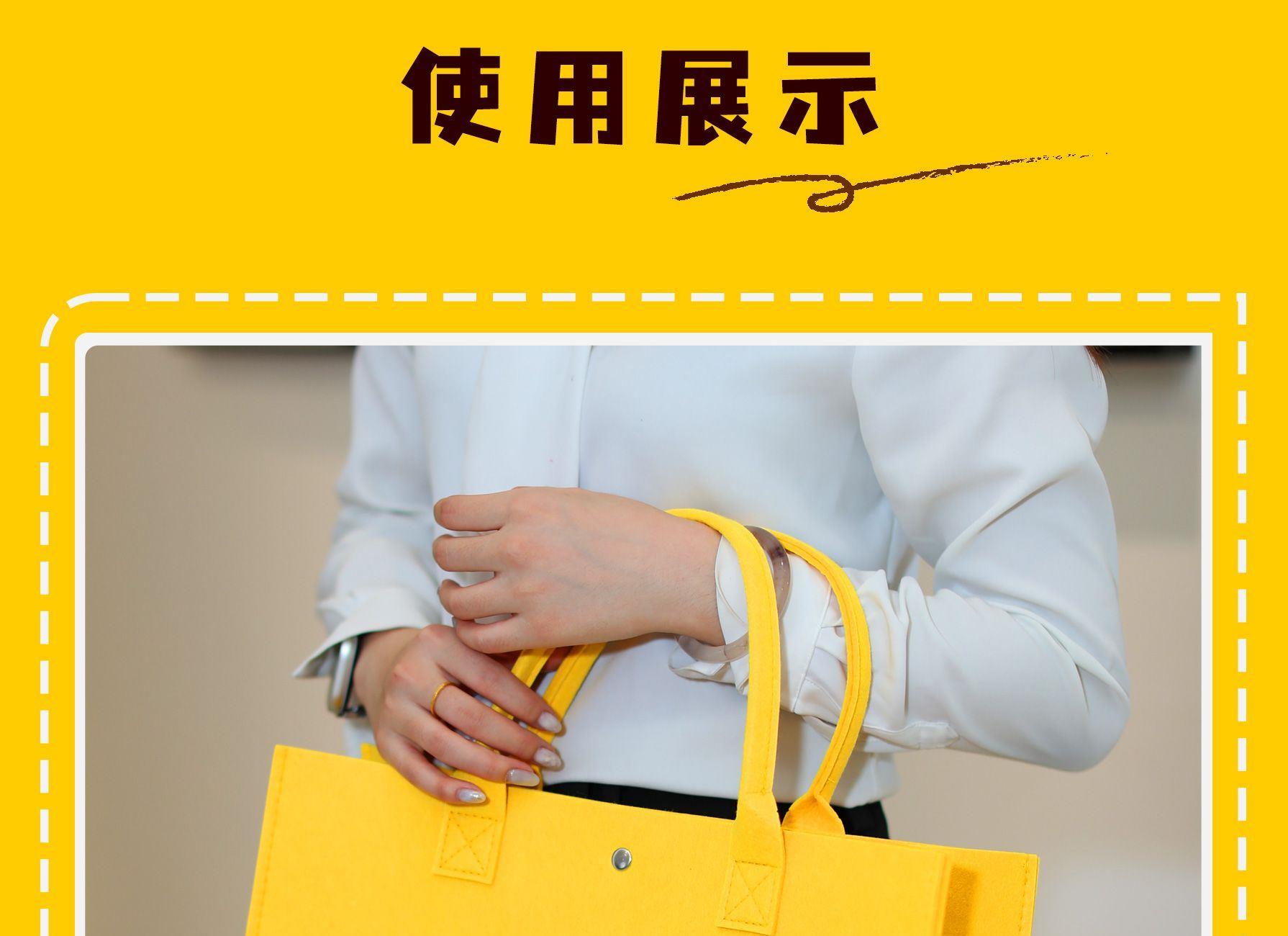 材 质:3mm毛毡布 规格尺寸:400*300*150mm 包装尺寸:opp袋 产品净重:214g 整箱毛重:12kg 1.加厚毛毡材质,造型立体不软塌 2.轻盈便携,好收纳。 3.大敞口设计收纳更便携,提手加粗设计车线加固,底部加厚处理, 承重性能强包型不软塌。 4.可重复使用,提倡绿色环保生活