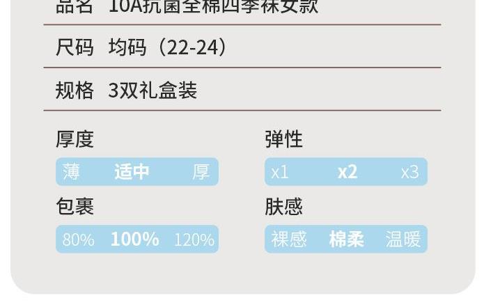 恒源祥10A全棉四季袜女款3双装HYX058WZ