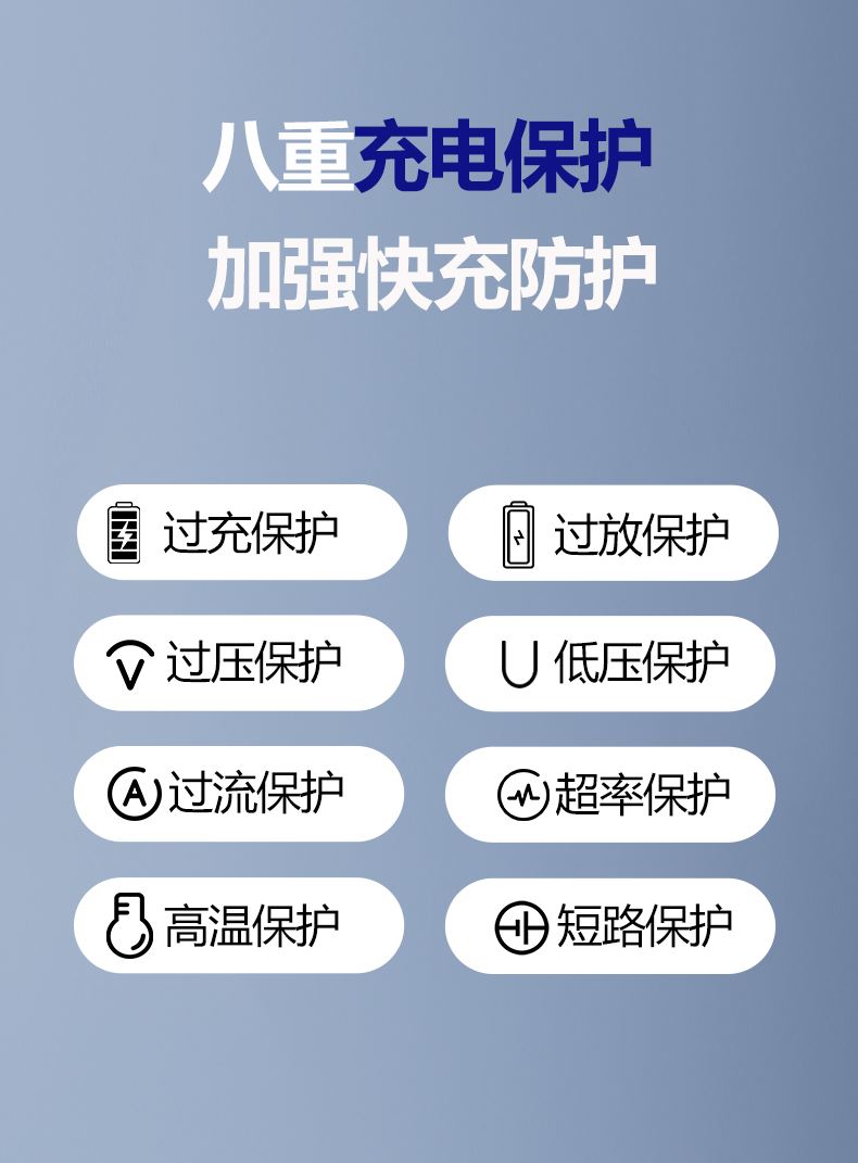 标称容量:10000mAh Type-C输入输出功率:35W Type-C口输入:5V=3A9V-3A12V-2.9A15V-2.3A20V-1.75A Type-C口输出:5V-3A9V-3A12V-2.9A15V-2.3A20V-1.75A Type-C线输入:5V-3A9V-3A12V-2.9A15V-2.3A20V-1.75A Type-C线输出:5V-3A9V-3A12V-2.9A15V-2.3A20V-1.75A USB口输出:5V-3A9V-2A12V-1.5A10V-2.25A Lightning线输出:5V-2A/总输出:5V--3A 产品尺寸:104*64*25.6mm 包装尺寸:178*108*35mm 产品颜色:灰 产品材质:ABS+PC 单个净重/毛重: 205g/325g