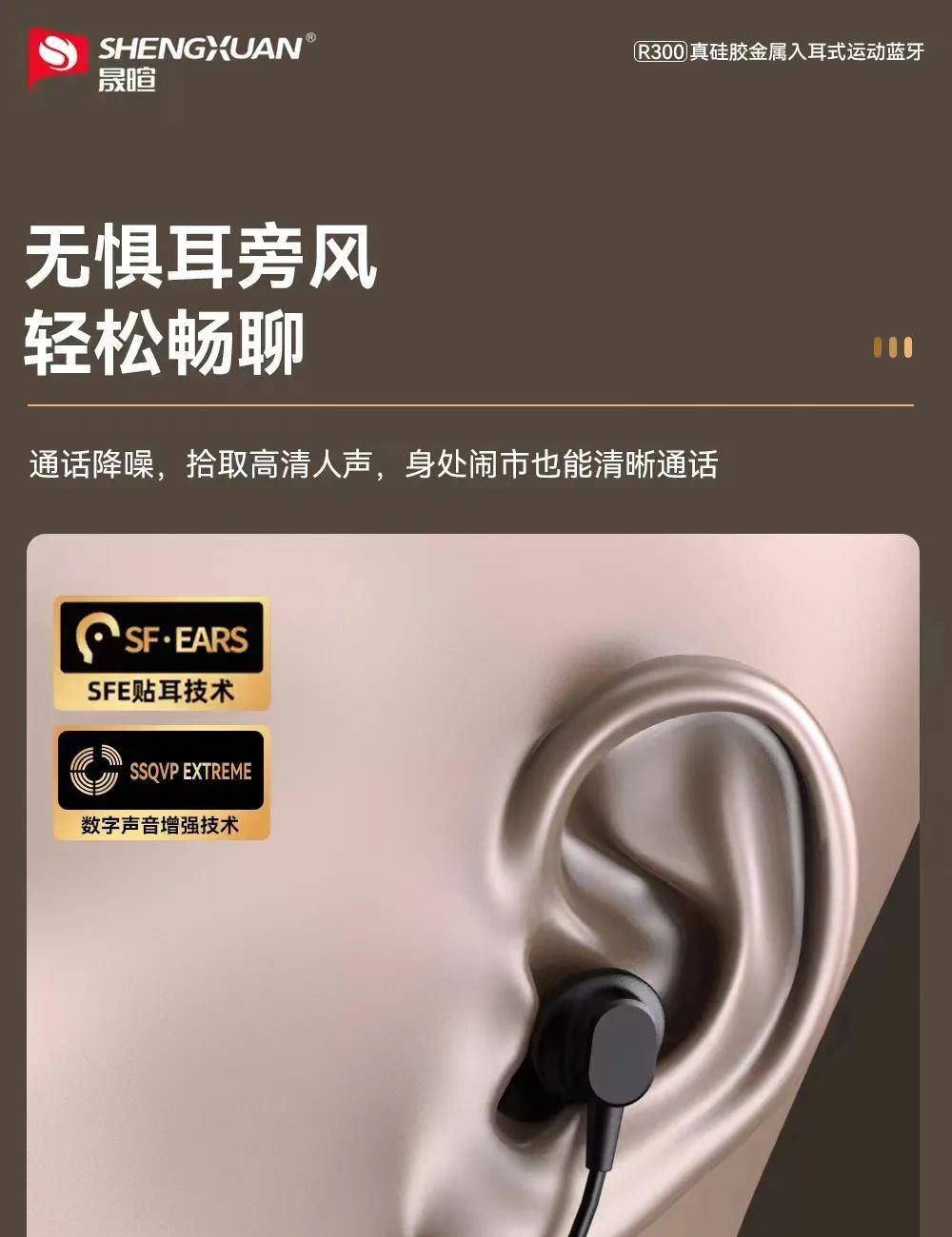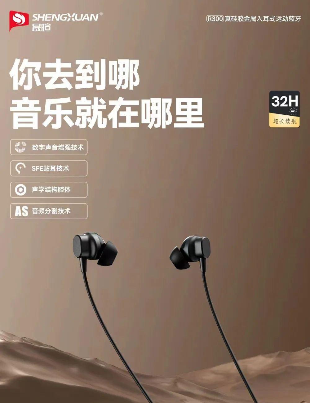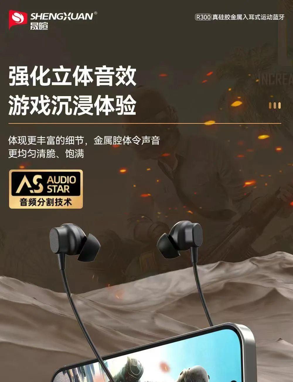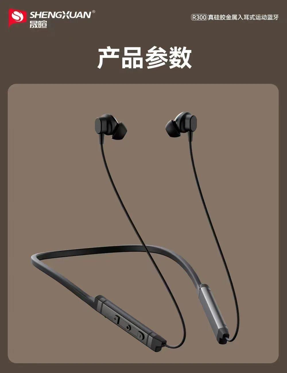 晟暄R300颈挂式金属入耳蓝牙耳机5.4进口立体声金属磁吸