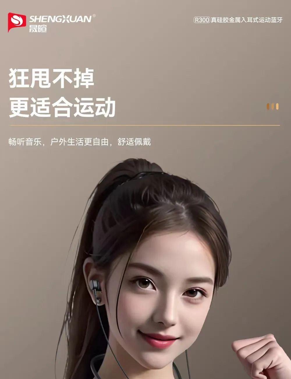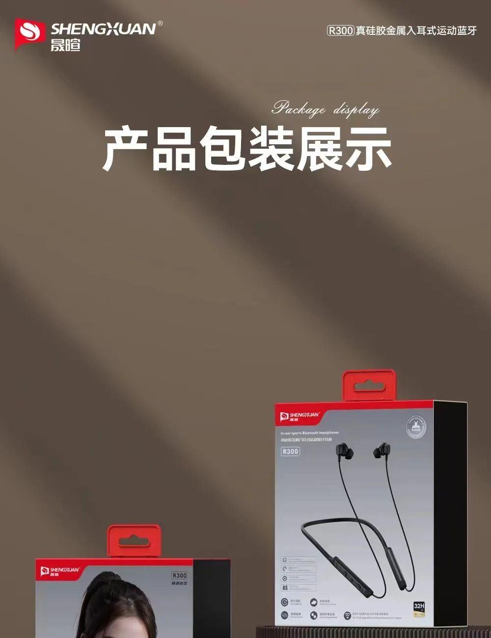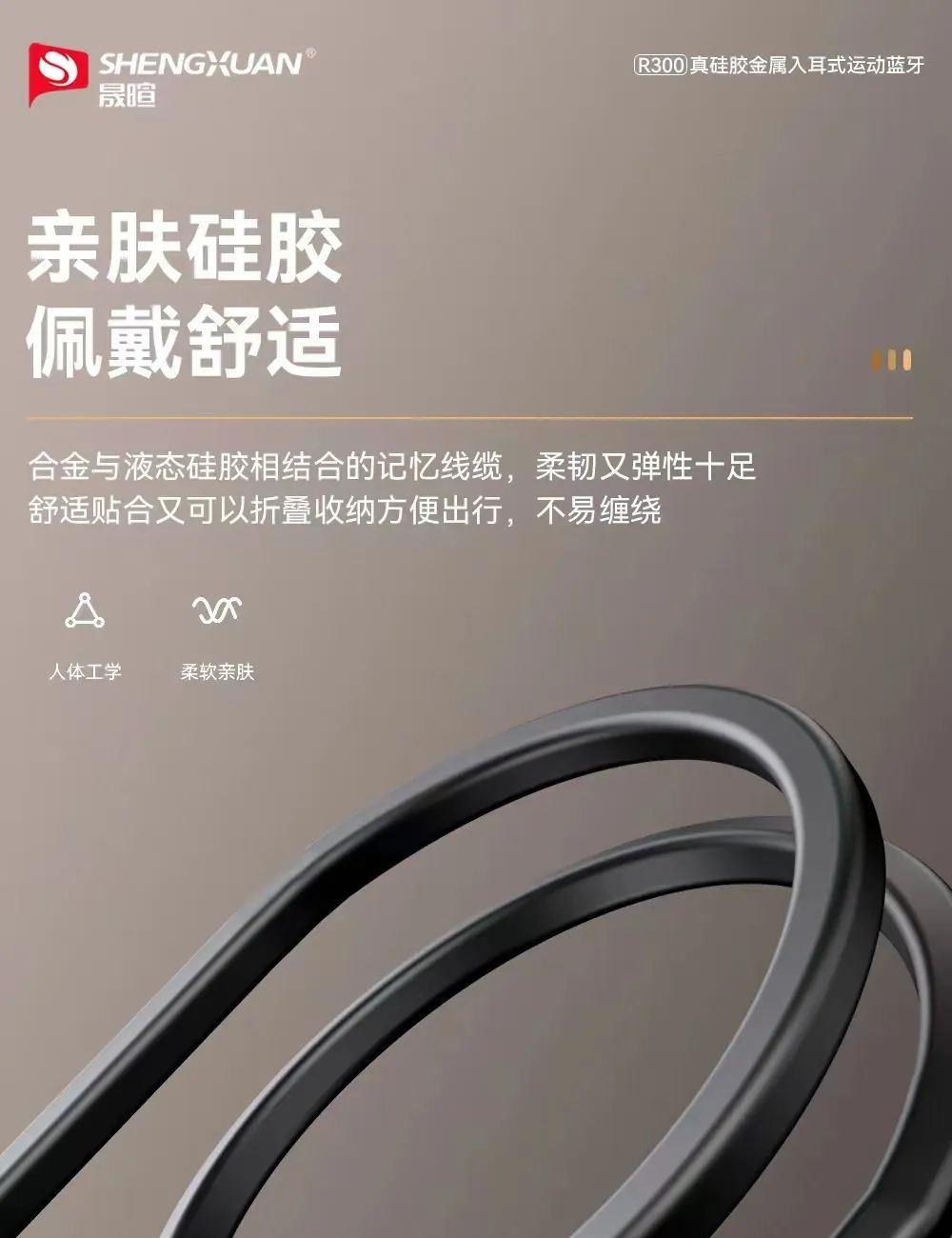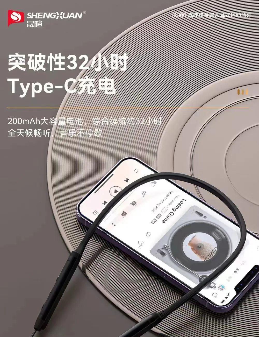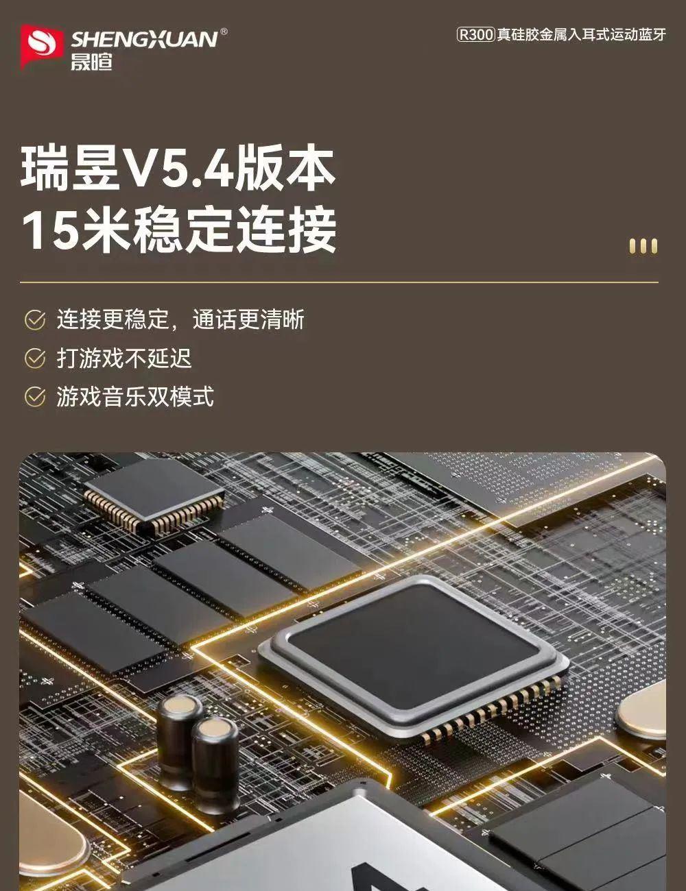 晟暄R300颈挂式金属入耳蓝牙耳机5.4进口立体声金属磁吸