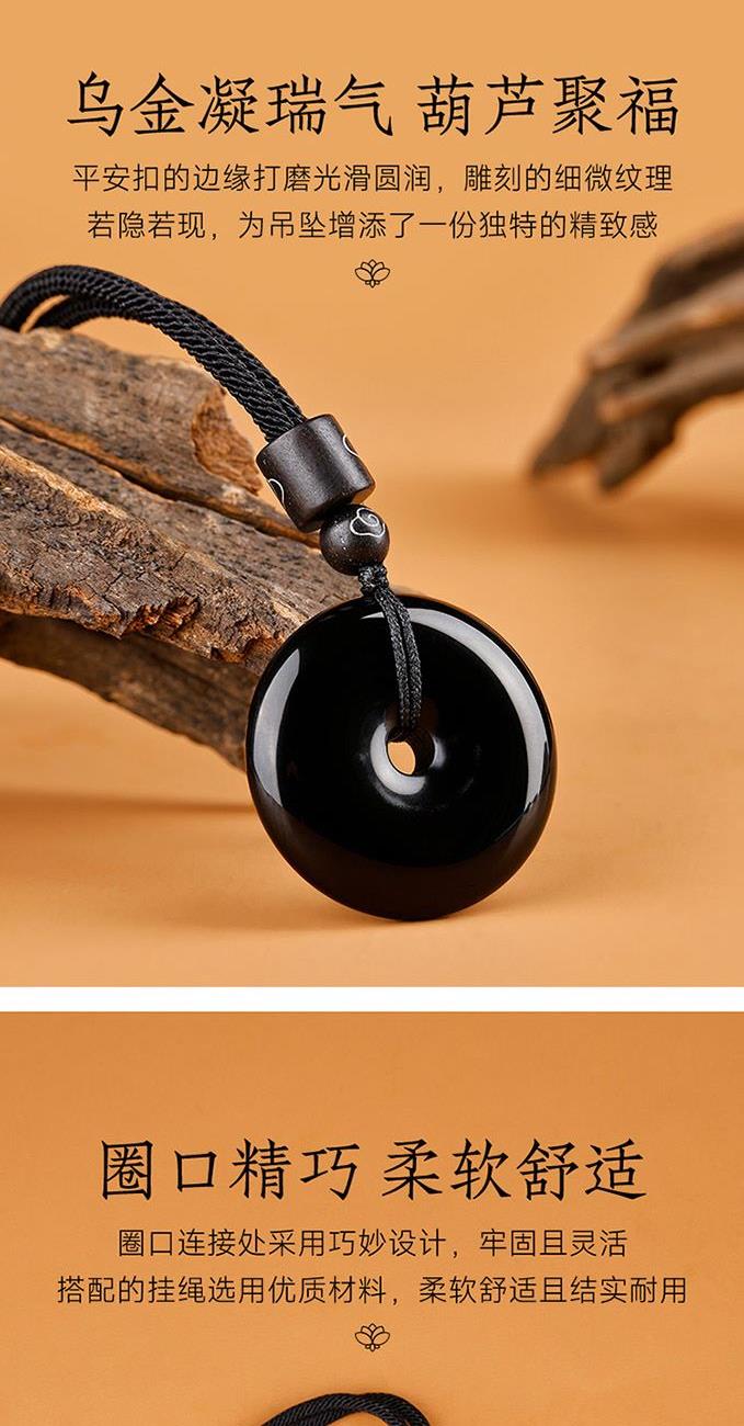 防护,百无禁忌: 黑曜石从材质上提供强大的辟邪和能量防护盾,而平安扣从形态上承担 “锁住平安,隔绝厄运” 的使命。两者结合,寓意着为佩戴者构建一个极其坚固的能量屏障,尤其适合感觉自身能量场较弱、需要强力保护的人。 先破后立,净中得静: 黑曜石先 “破”——破除邪祟、吸收负能量;无事牌后 “立” ——立下平安、宁静的愿景。黑曜石净化你的能量场后,无事牌的“空”和“无”才能更好地带来内心的宁静与祥和。寓意着 “净化身心,方得自在”。