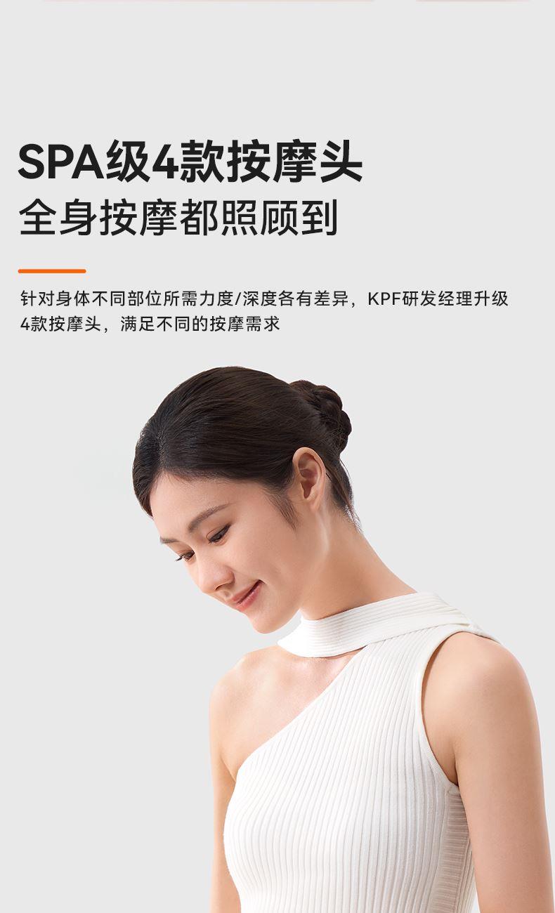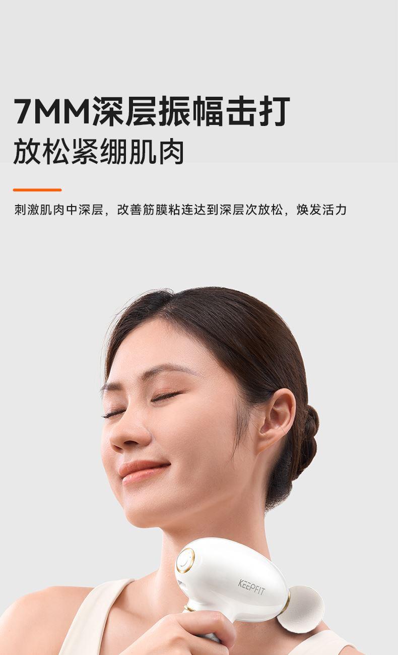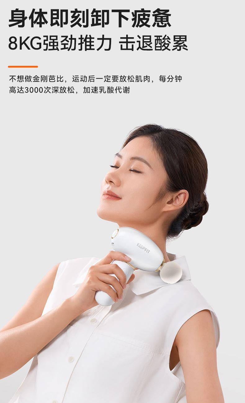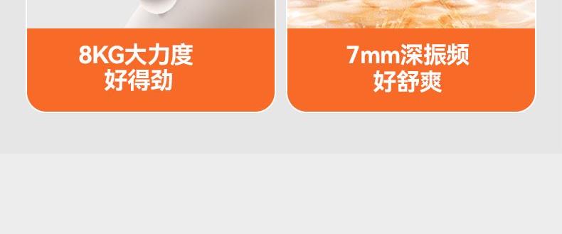【颜值】珍珠造型、轻巧超便携 【降噪】科普菲降噪技术,轻声运行,静享舒式 【力度】打击力度达8KG,力量强劲超给力 【深度】按摩深度7MM,直达深层肌肉按摩 【智感】智能变频加力,懂你需求的筋膜枪