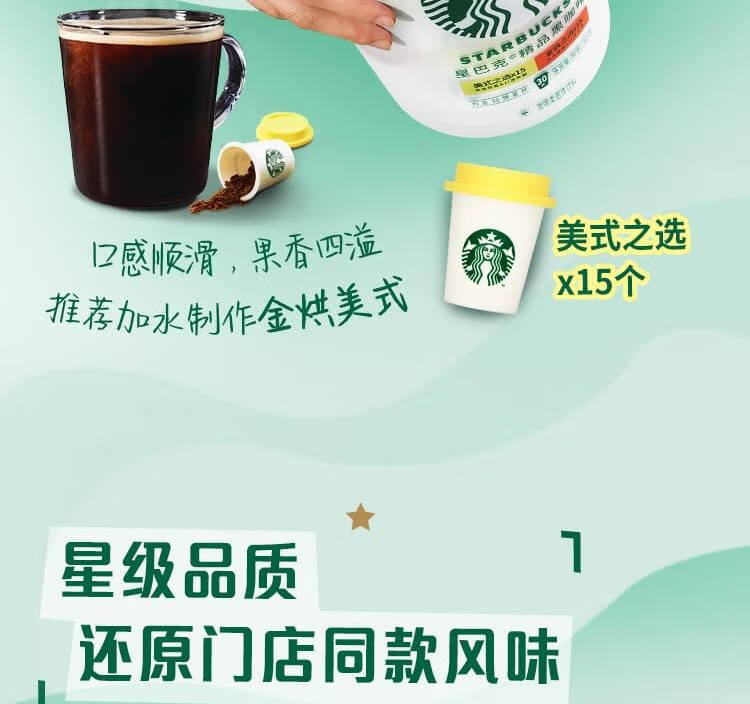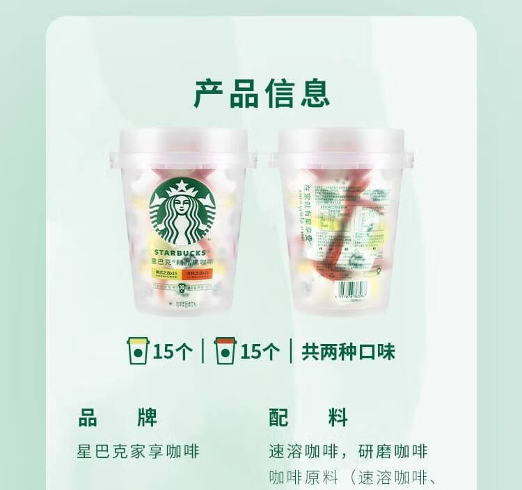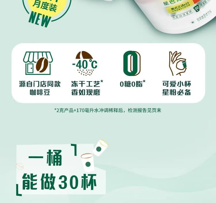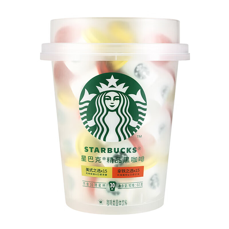 星巴克精品冻干黑咖啡随星杯2.0抱抱桶2g*30颗