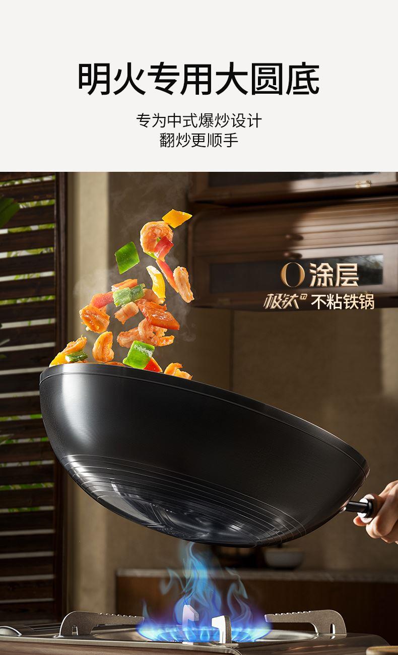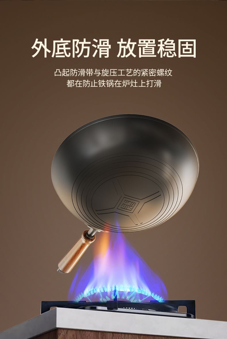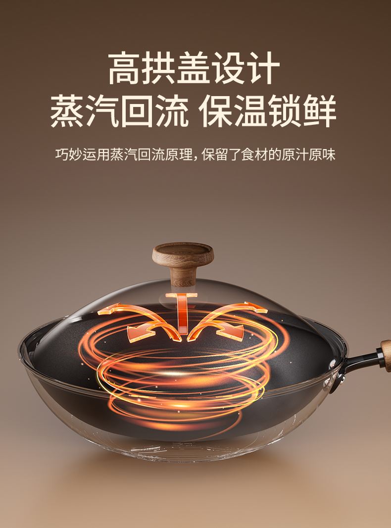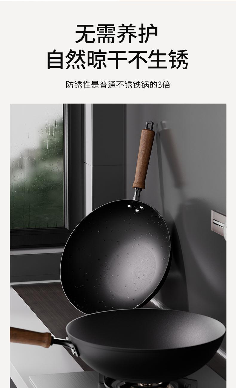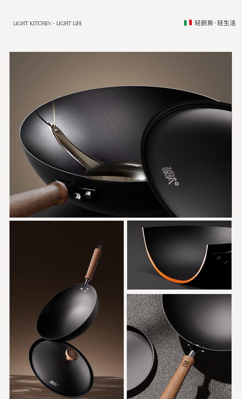 产品规格:32cm 产品货号:2301080432 彩盒尺寸:400*375*142mm 1、等离子钛熔覆,”0”涂层,国标1级不粘 2、精选优质钢材,含铁量达到99.6%,高纯铁更健康 3、高温窒化氮化工艺,不生锈 4、专属晶螺纹锅底,防滑耐磨 5、高拱铁盖设计,蒸汽回流,保温锁鲜 6、人体力学手柄,握感舒适,隔热防烫 7、明火灶具使用