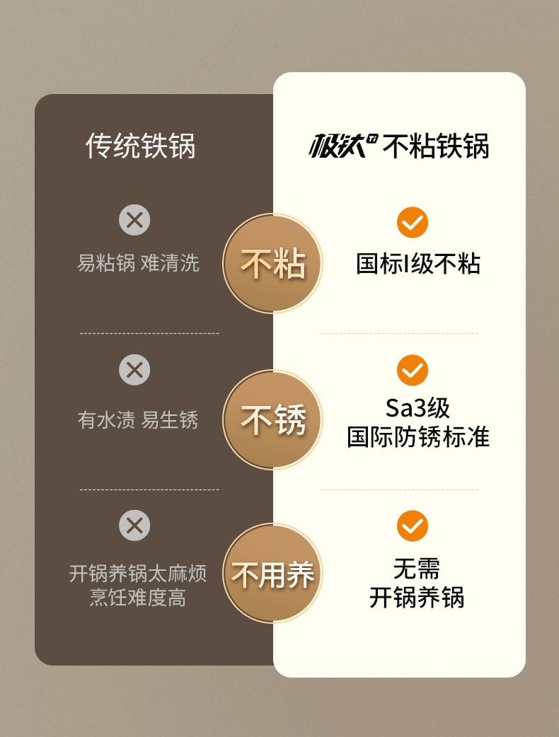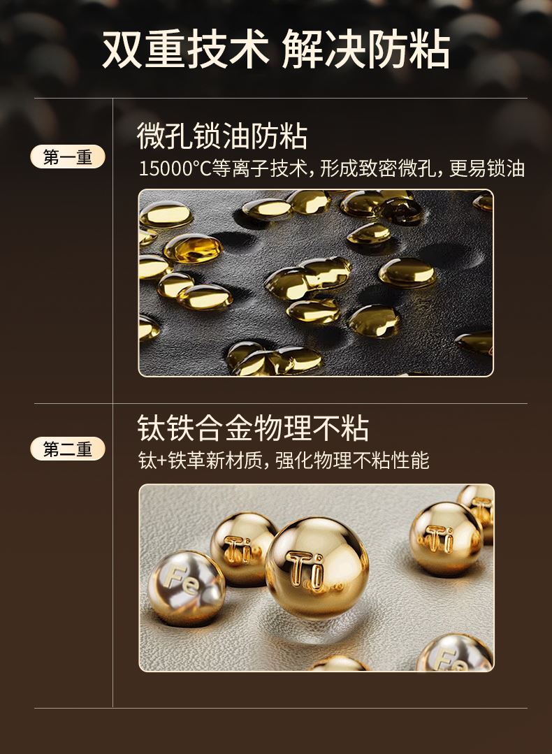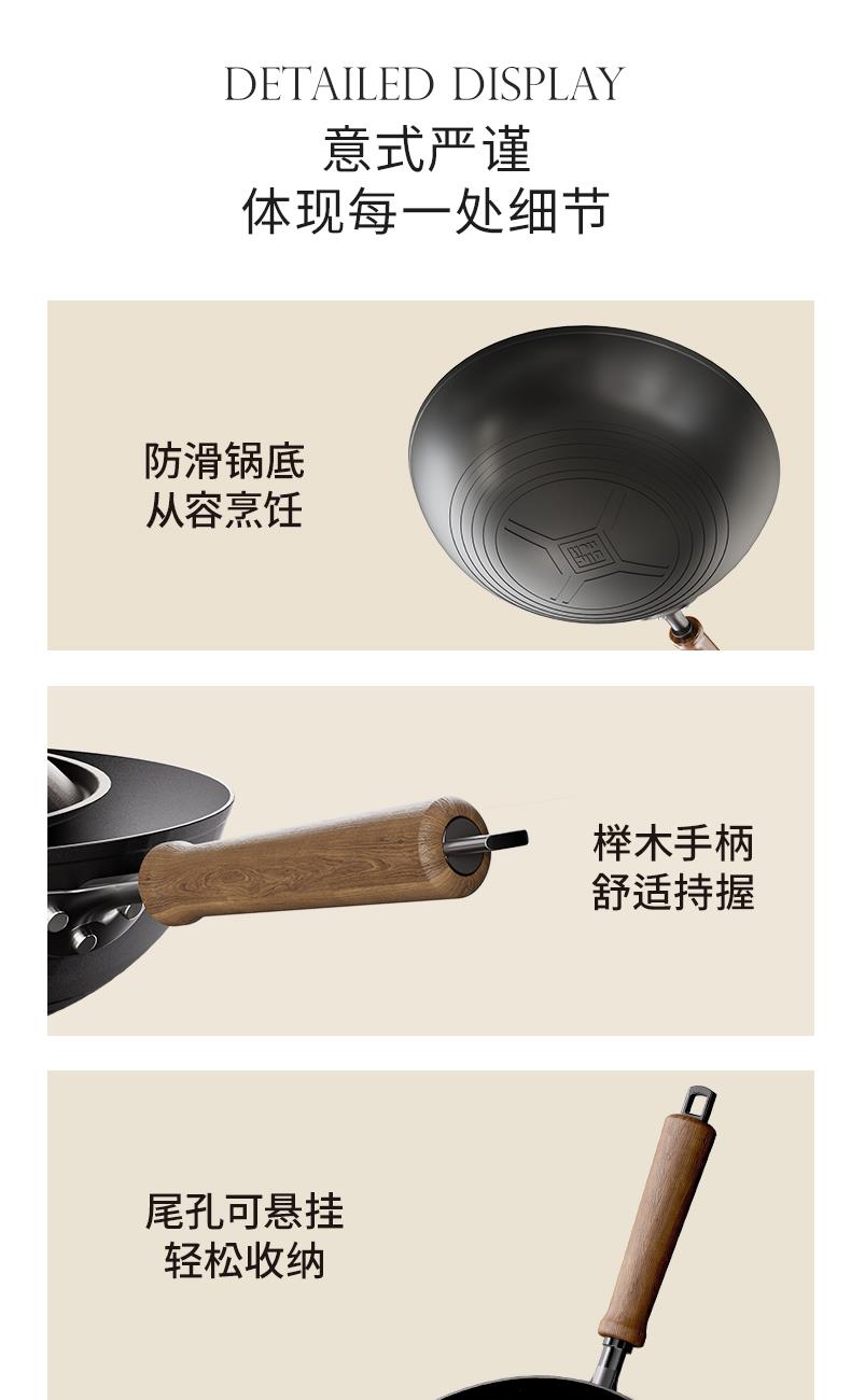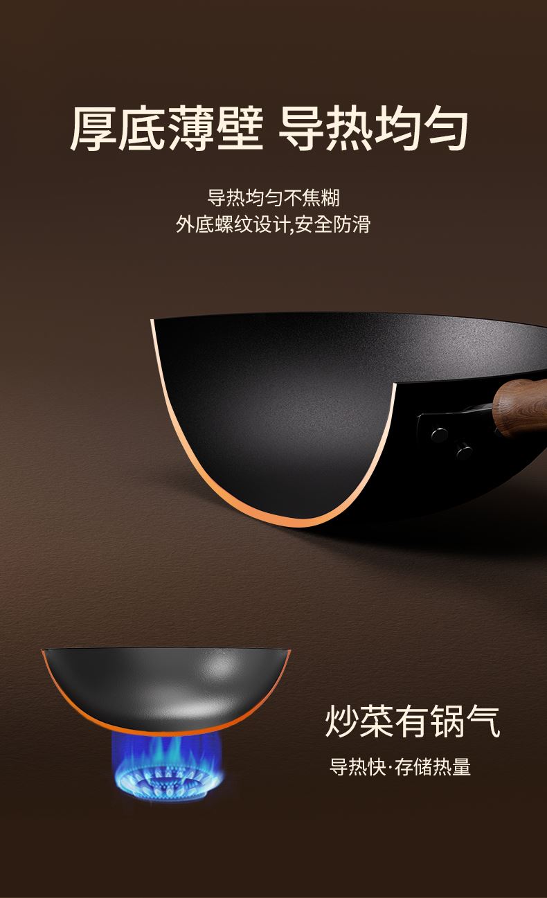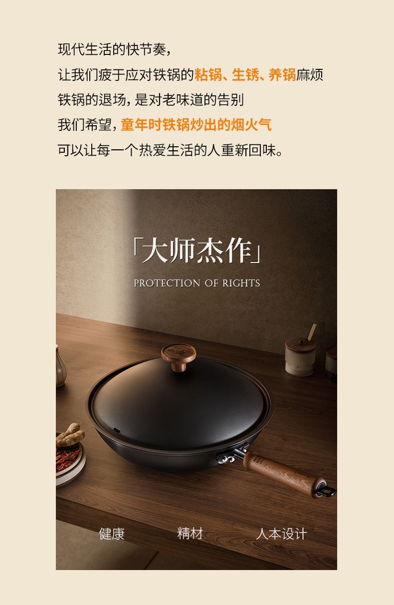 产品规格:32cm 产品货号:2301080432 彩盒尺寸:400*375*142mm 1、等离子钛熔覆,”0”涂层,国标1级不粘 2、精选优质钢材,含铁量达到99.6%,高纯铁更健康 3、高温窒化氮化工艺,不生锈 4、专属晶螺纹锅底,防滑耐磨 5、高拱铁盖设计,蒸汽回流,保温锁鲜 6、人体力学手柄,握感舒适,隔热防烫 7、明火灶具使用