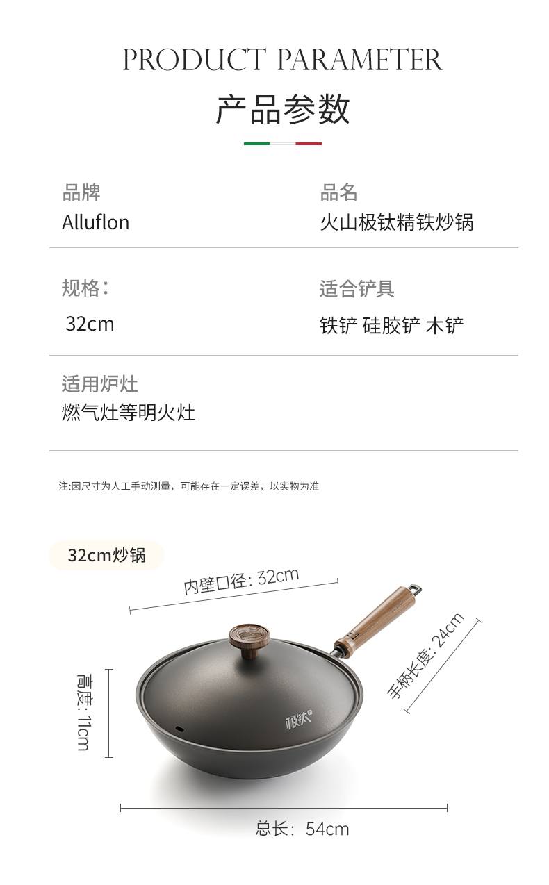 Alluflon阿路弗仑火山极钛精铁炒锅32cm