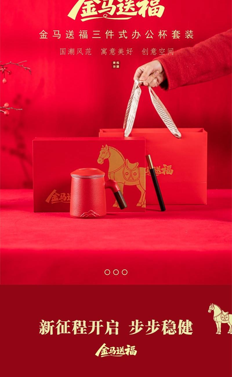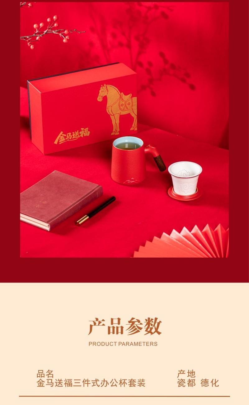 开门红年会礼品金马送福三件式办公杯套装