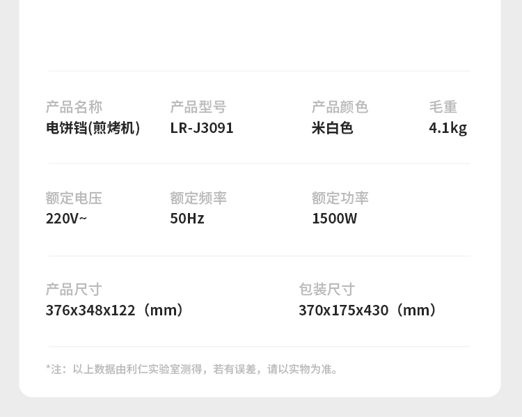 利仁36mm加深盘电饼铛LR-J3091