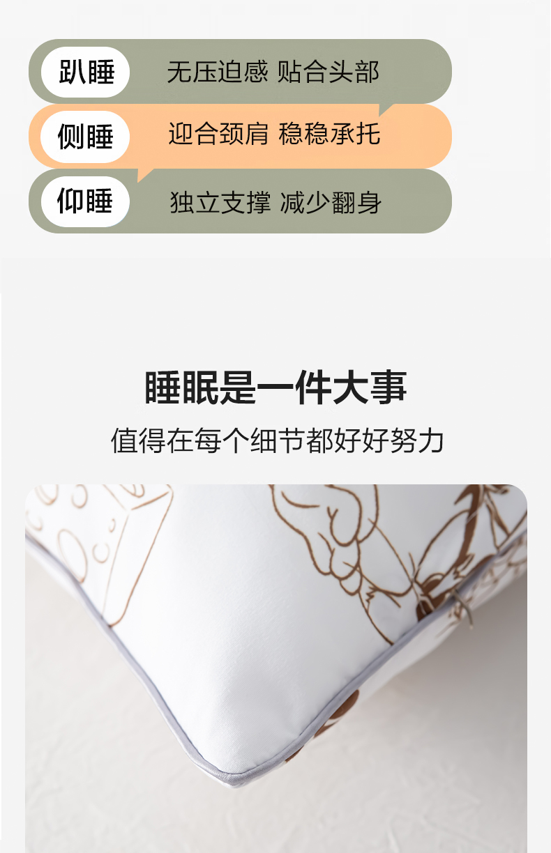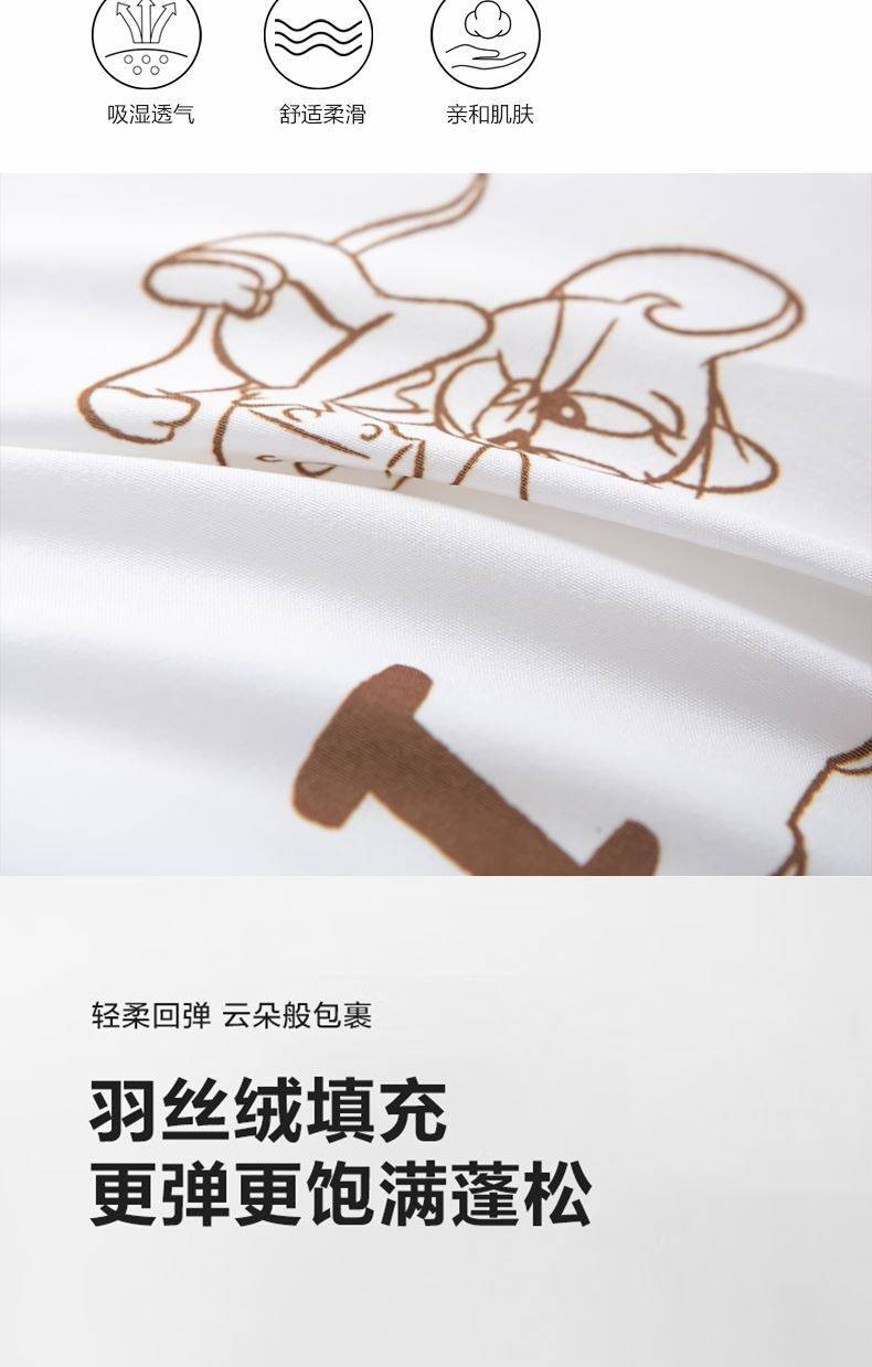 主要材质:面料:聚酯纤维 填充:聚酯纤维 产品重量(净/毛重) : 650g*2 产品尺寸:46*72cm 1、全网家纺品类正版授权卡通IP,可爱卡通形象深入人心 2、枕头亲肤面料,高支高密受力均匀 3、枕芯羽丝绒填充,轻柔回弹恢复性能好,带来舒适睡眠 4、做工精细,包边工艺增加立体感,不跑线不易变形