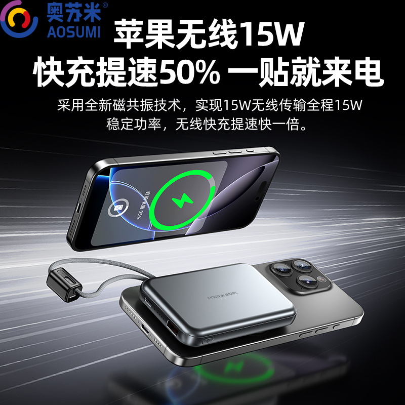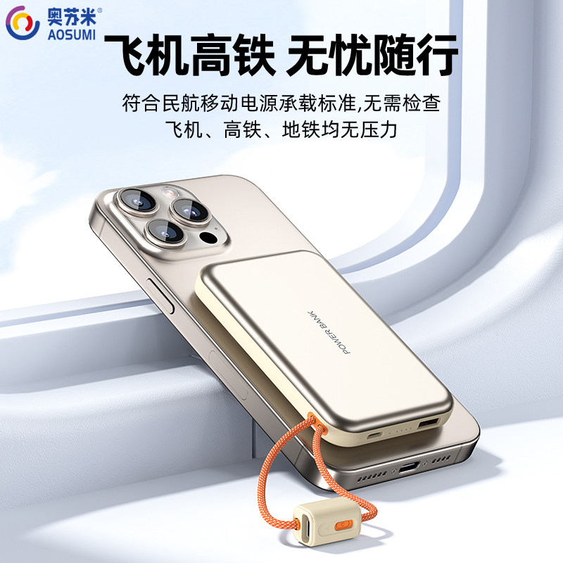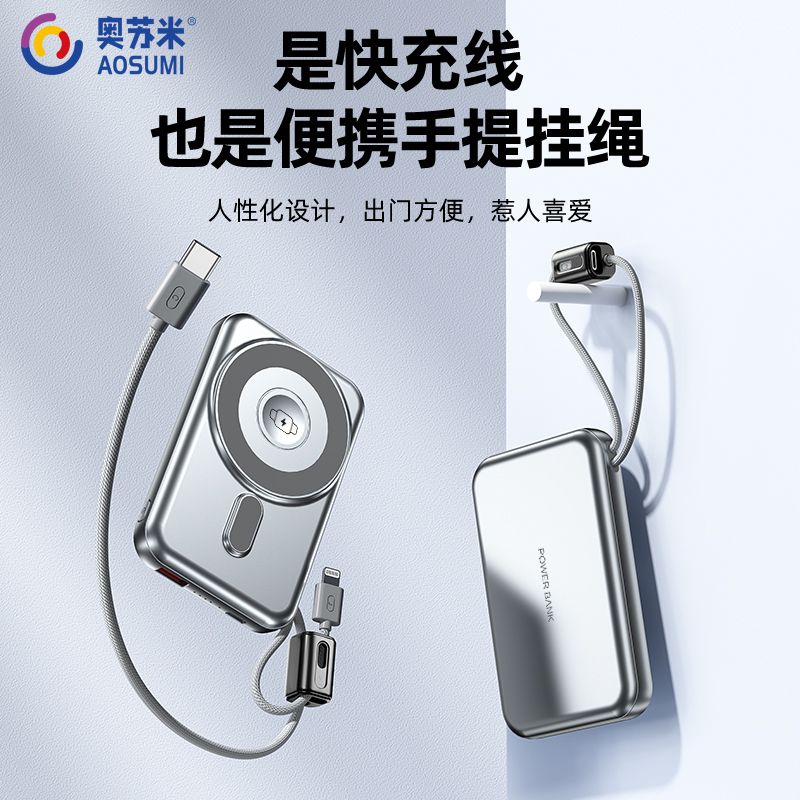 奥苏米刀锋磁吸三合一铝合金快充移动电源