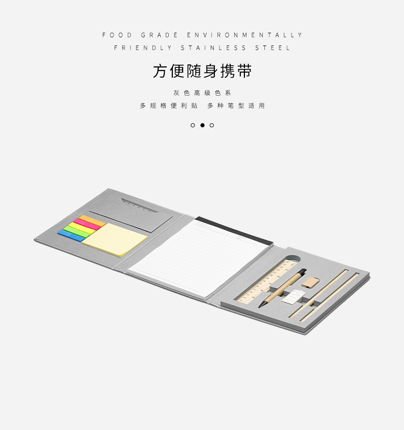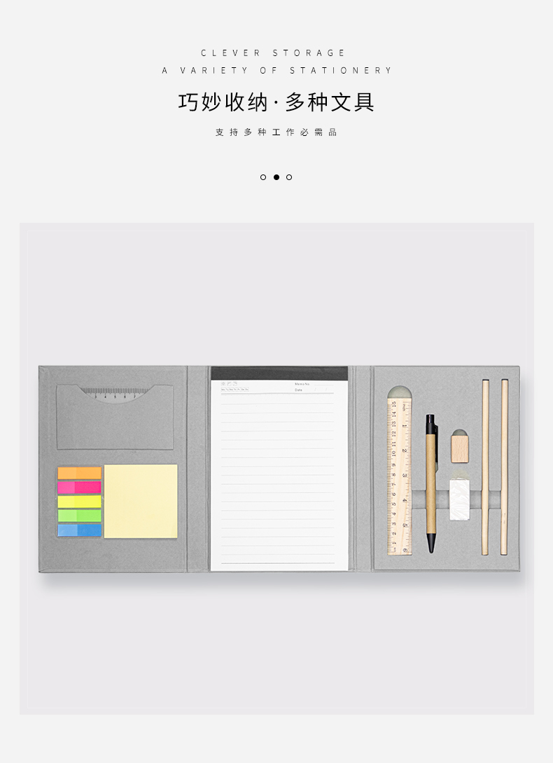 1.这款新型折叠记事本, 包含所有必需品的笔记功能! 2.本子内部明细: 2把尺子、2支铅笔、便利贴、A5 记事本、圆珠笔、卷笔刀和橡皮。 3.产品闭合尺寸: 21 x 15 x 2.2 厘米(8.2 x 5.9 x 0.87 英寸) 产品打开尺寸: 50 x 15 x 1 厘米(16.6 x 5.9 x 0.4 英寸)