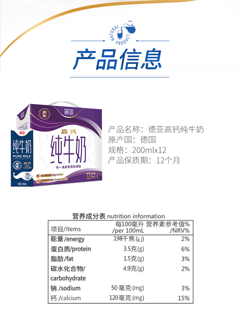 保质期365天 德国进口纯牛奶