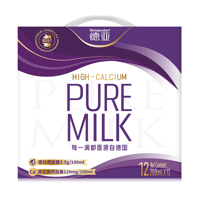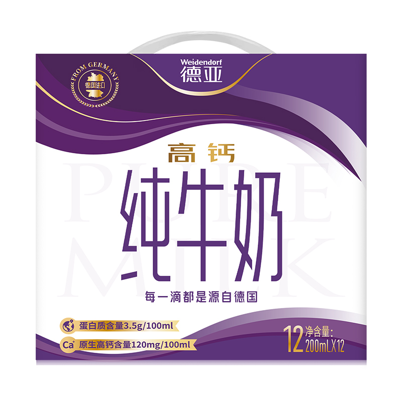 德亚高钙纯牛奶200ml*12
