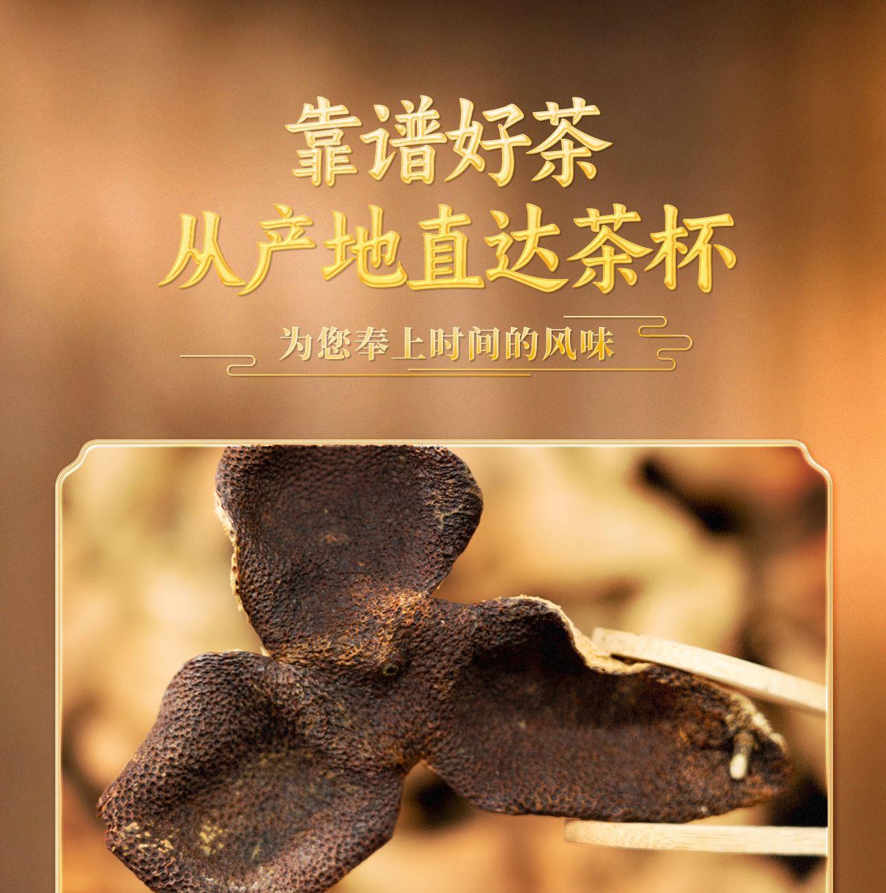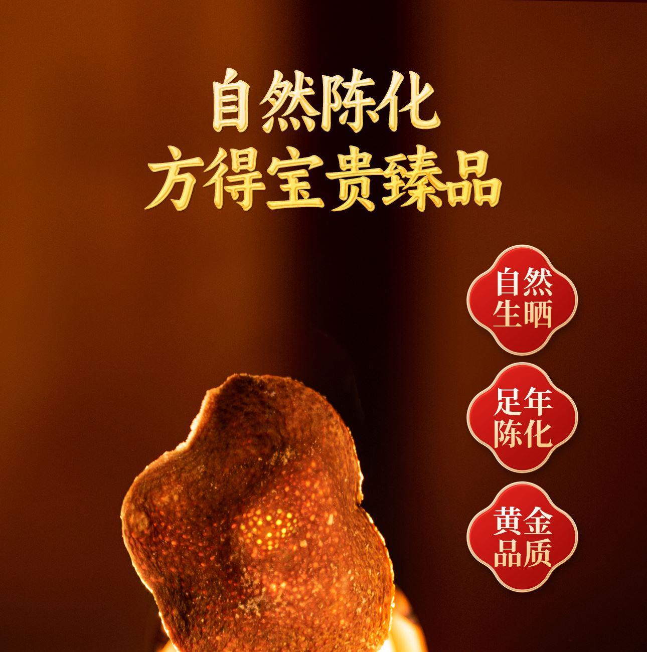 原料选的是新会陈皮核心产区梅江村圈枝柑老树大红皮,后经阳光生晒、十余年自然干仓陈存转化而制成,具有色、香、味俱佳,品质天然,历久弥珍的特点。