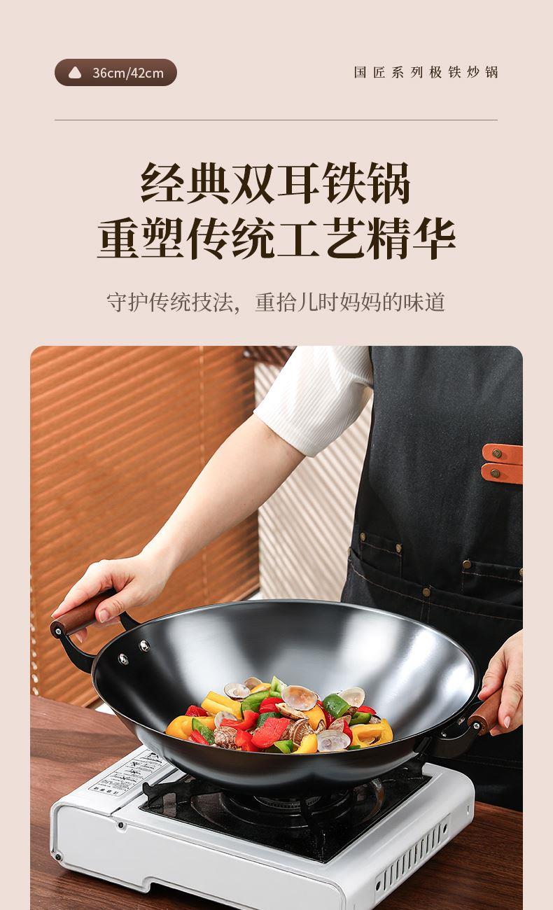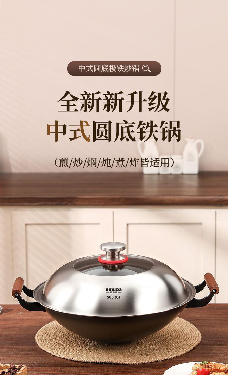 欧美达国匠系列-中式圆底极铁炒锅A款42CMJTC42-A