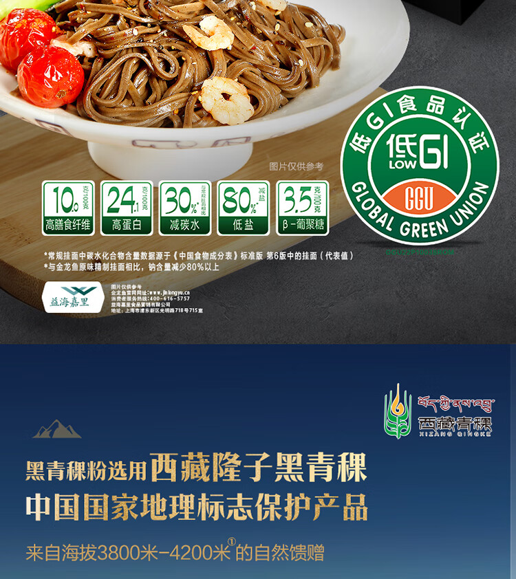 金龙鱼黑青稞苦荞挂面礼盒100g*6礼盒
