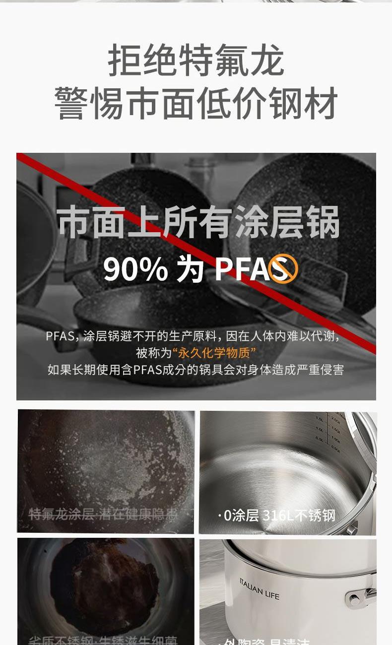 规格:18cm 材质:复合钢 单个尺寸:390X250X148 1、0涂层脱落,0氟更健康 2、内316L不锈钢外天然陶瓷,纯净健康 3、外陶瓷釉面,不留划痕 4、内里砂光工艺,强度更高耐磨 5、3层钢复合锅底,不糊底 6、锅身加高,不惧沸腾溢锅。