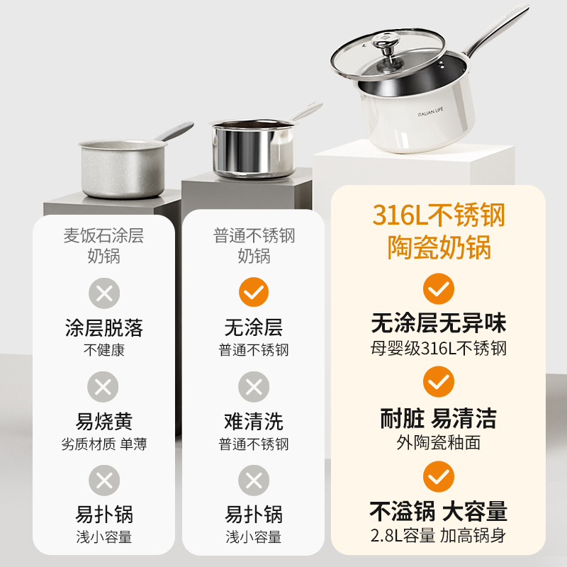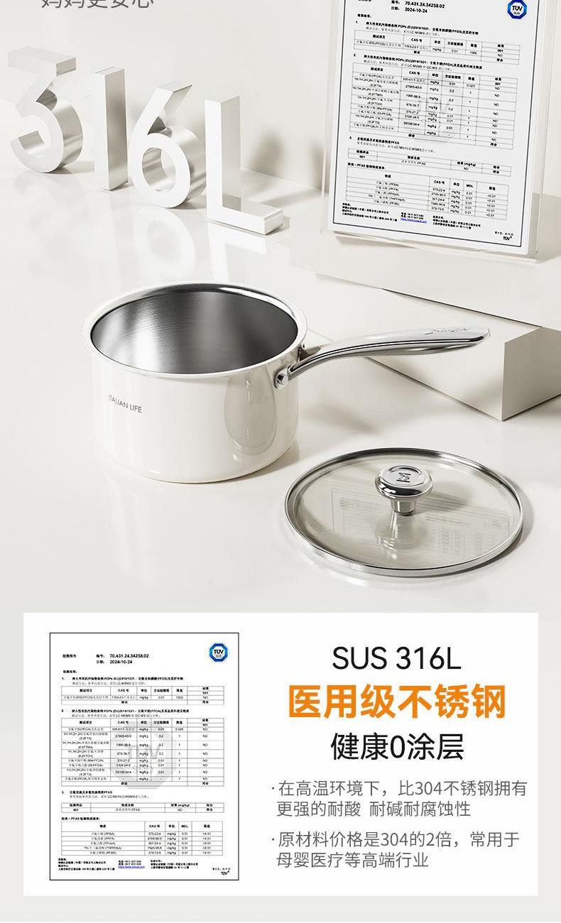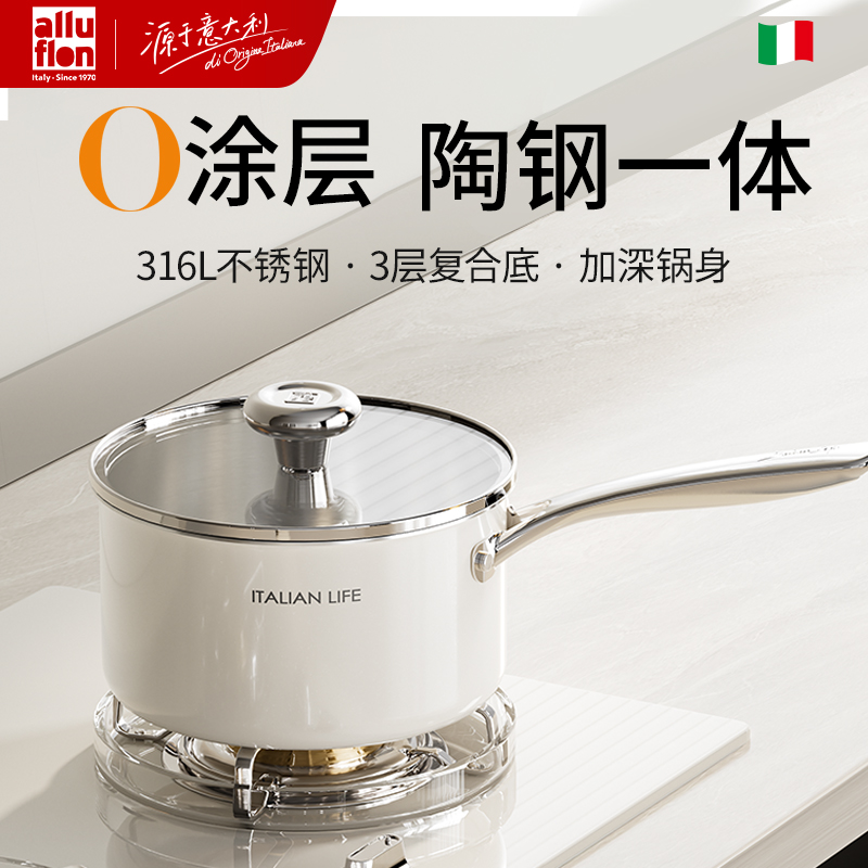 Alluflon阿路弗仑萨索洛陶瓷复合钢奶锅18cm