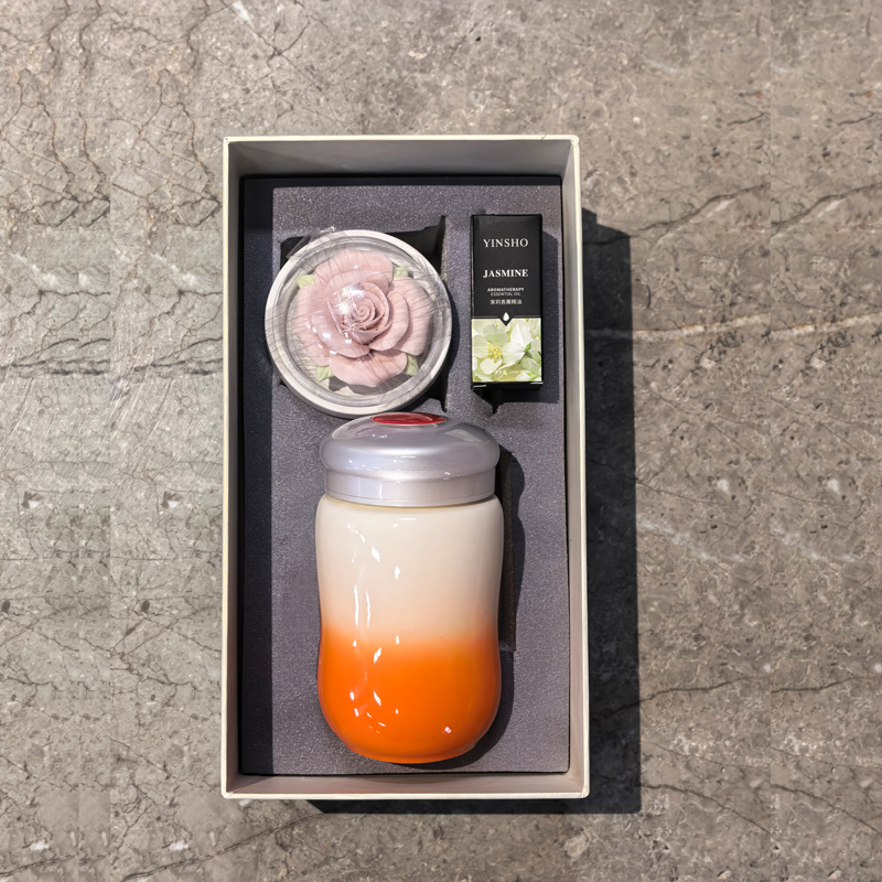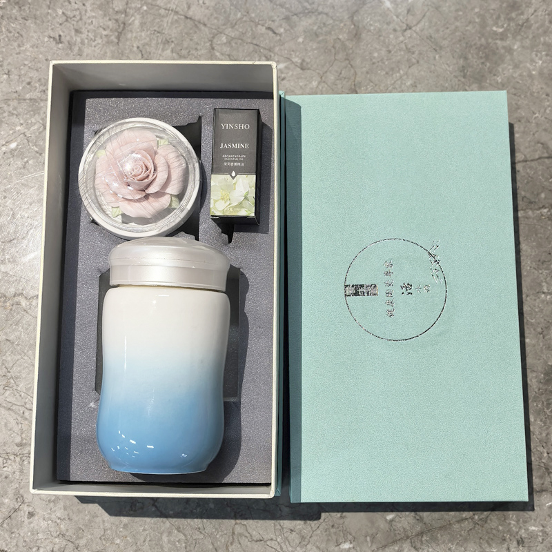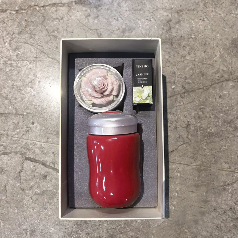 配 制: 1保温杯 1玫瑰瓷雕香薰 1精油 1礼盒 手提袋 材质:高白瓷 手工瓷雕 规格:保温杯直径6*高13cm*口径5.5cm 容量300-350ml 玫瑰扩香器7.9*4.3cm 推荐说明:,玫瑰香薰套装,非遗文化手工瓷雕玫瑰,扩香器,配精油一瓶。新品。