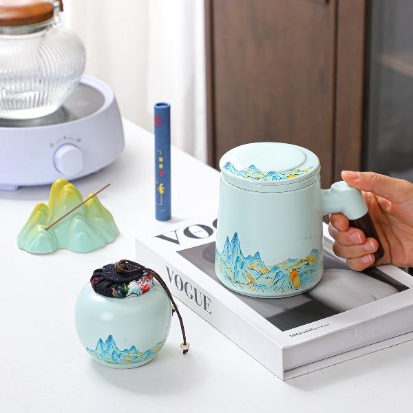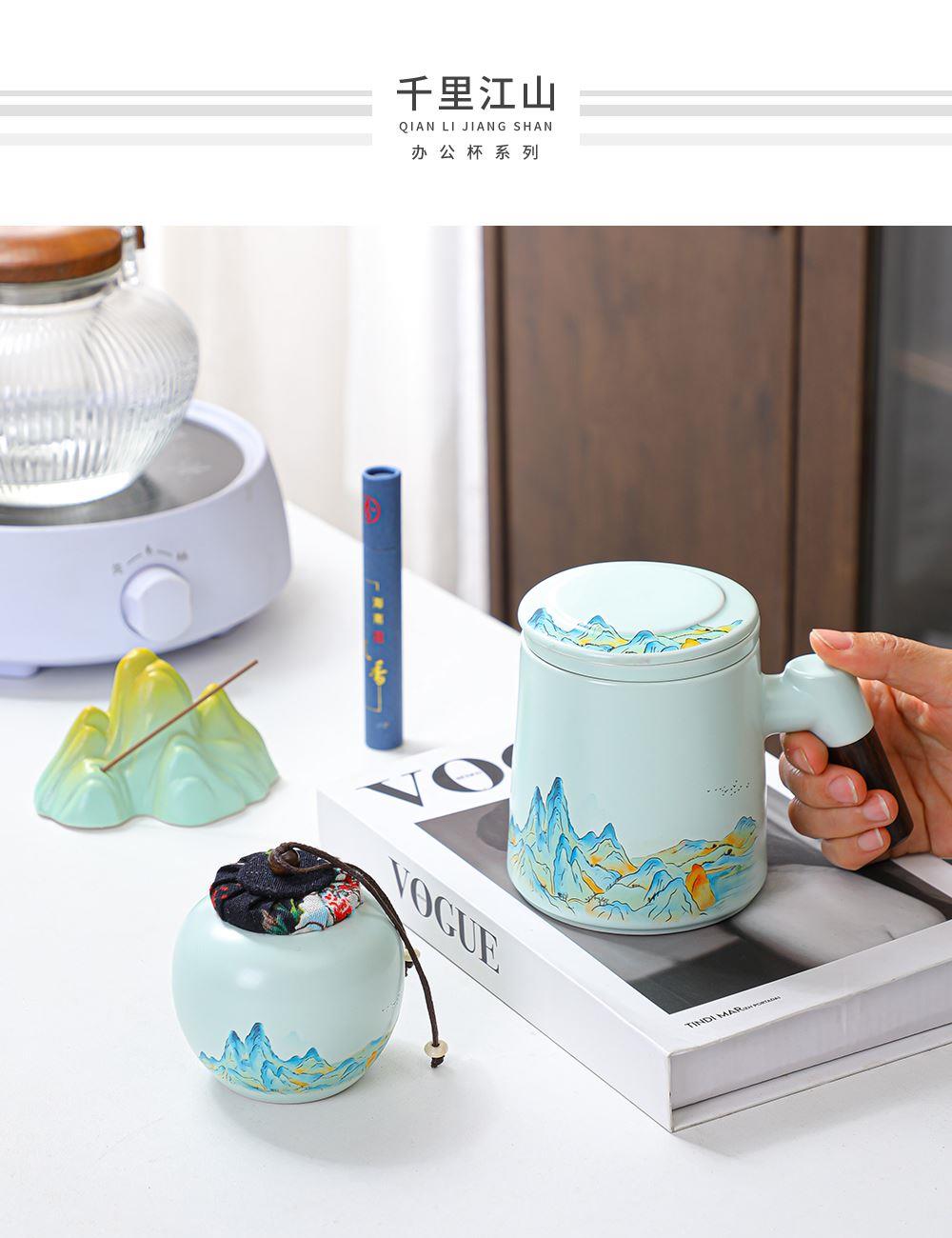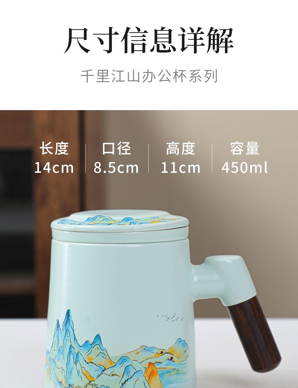 办公杯:14*8.5*11厘米450ml 茶叶罐:8*8厘米 礼盒:30*14.5*13厘米 精选高岭土等优质原料,经高温烧制而成,质地致密,造型简约大方,线条流畅,符合现代审美;或造型古朴典雅,尽显传统韵味。