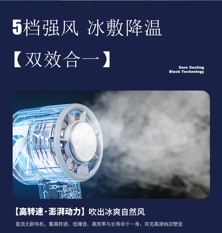 5.涡轮高速无刷电机, 轻音运行,快速制冷