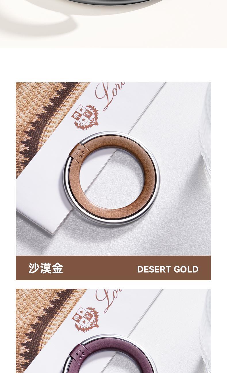型号:KH19 材质:锌合金 尺寸:60*60.3*4.2mm 重量:32g 颜色:沙漠金,黑色,紫色 4mm纤薄,舒适不硌手 锌合金磁吸指环支架 任意角度悬停,横放竖放都行 磁铁强吸附,拎着更稳妥 一环多用,便捷生活新姿态 360°旋转,180°折叠