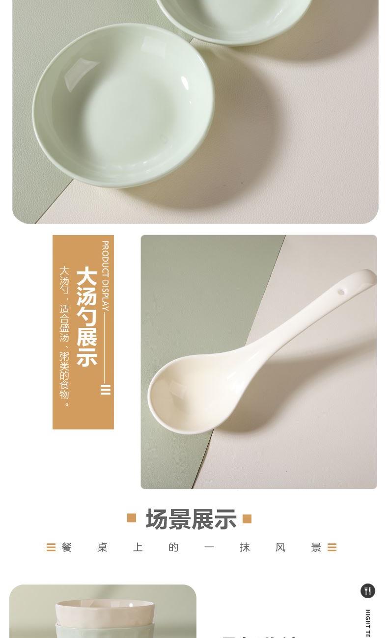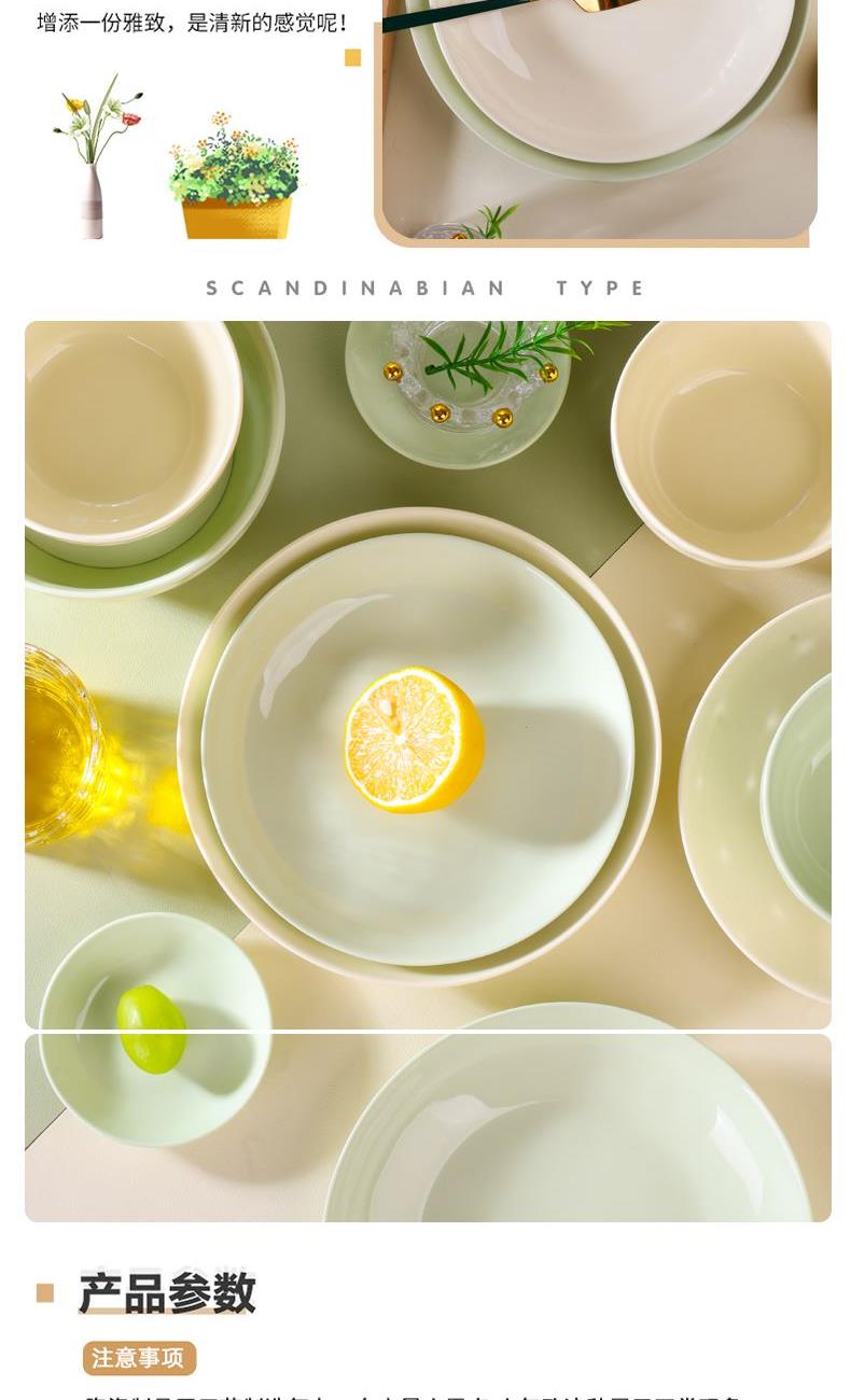 产品规格: 8英寸饭盘2个、7英寸饭盘2个、6英寸面碗2个,4.5英寸饭碗6个,4英寸调味碟4个,8英寸汤碗1个,大汤勺1个。 产品材质:陶瓷 产品花色:釉下马卡龙 包装方式:彩盒+内盒 彩盒尺寸: 223*223*371mm 单套重量:5.2Kg