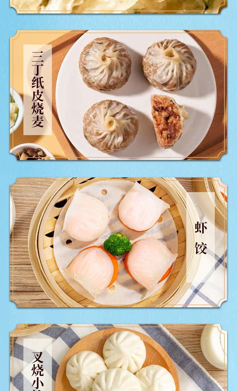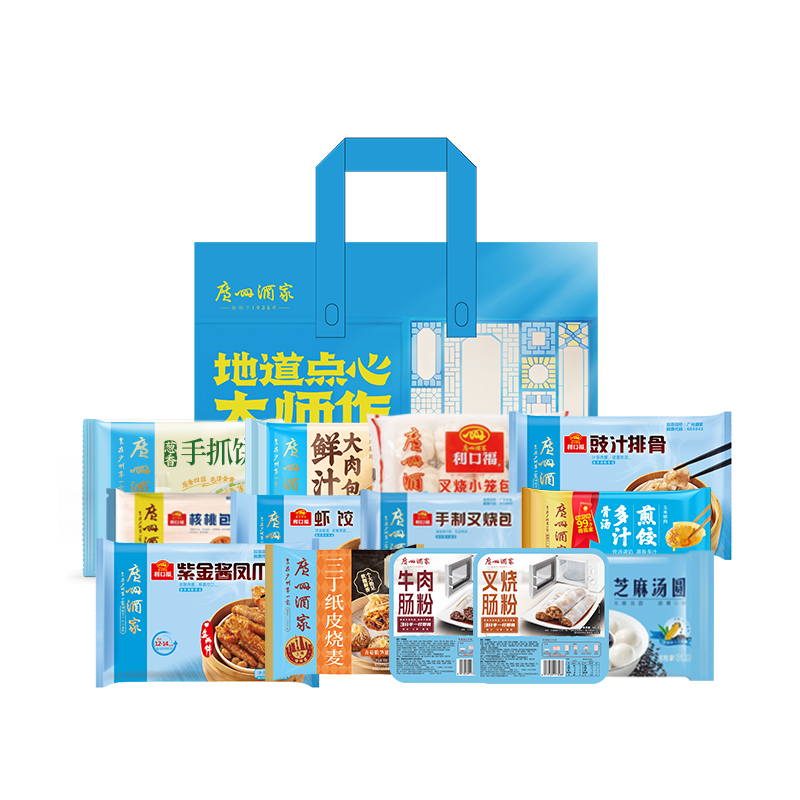 中华粤菜标杆 无需茶楼排队,在家轻松复刻地道广式饮茶体验 省心、放心和正宗的味道 礼盒尺寸:42.5*29.5*26.5cm 内容物:虾饺(160g) 牛肉肠粉(185g) 手制叉烧包(337.5g) 核桃包(337.5g) 三丁纸皮烧麦(240g) 玉米猪肉多汁煎饺(300g) 鲜汁大肉包(390g) 葱香手抓饼(450g) 芝麻汤圆(200g) 紫金酱凤爪(250g) 叉烧小笼包(300g) 豉汁排骨(250g) 叉烧肠粉(185g)