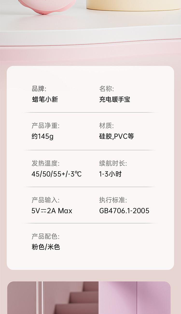 蜡笔小新马卡龙暖手宝4000mAhTP06-02粉色