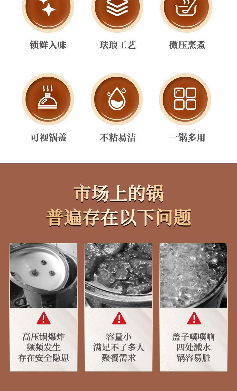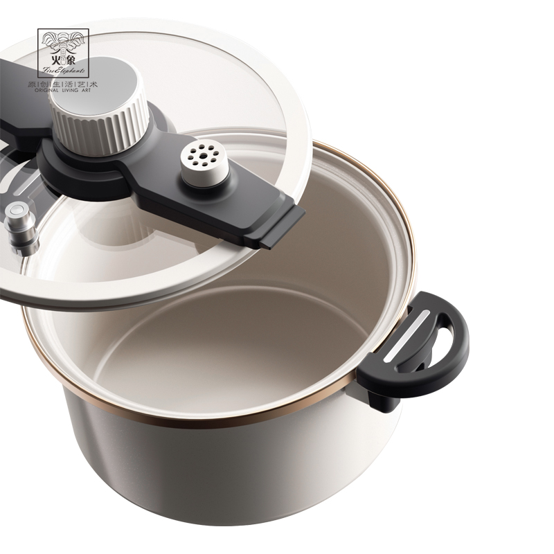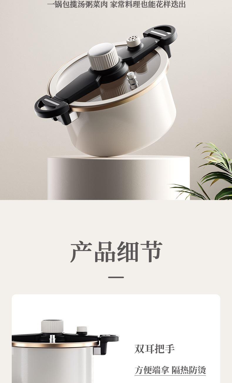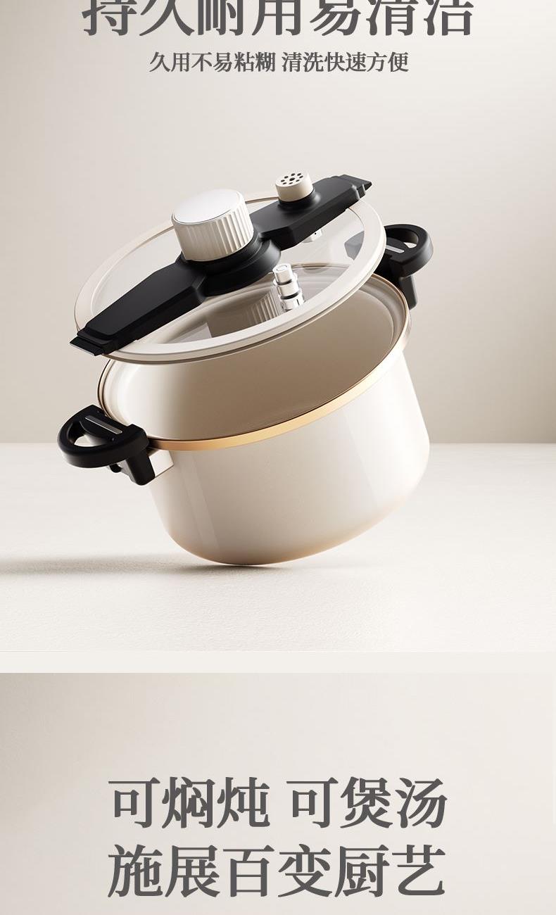 4、珐琅瓷釉锅体、可视硅胶玻璃盖、防堵泄压阀、旋转自动开关、滑动伸缩锁扣等,安全多重防护系统 ,安全无忧,重新定义压力锅安全标准。