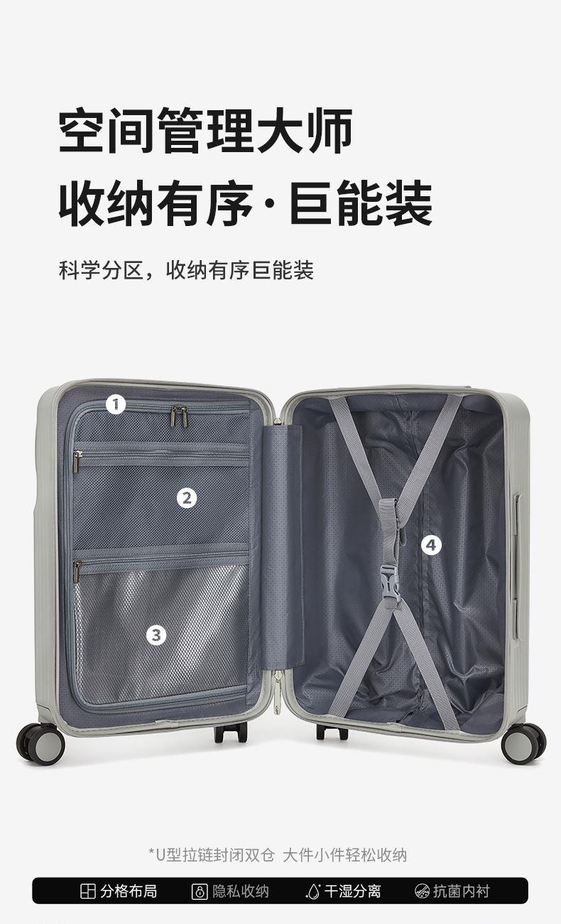 材质:面料:PC+ABS,里料:织物 尺寸:长32宽28高56cm 特点:登机无忧,轻便灵活 颜色分类:黑色/浅棕 吊牌价 :1250元 适用场景:短途出差、周末游 上市时间:2025年秋季 类别:行李箱 适用人群:男女通用