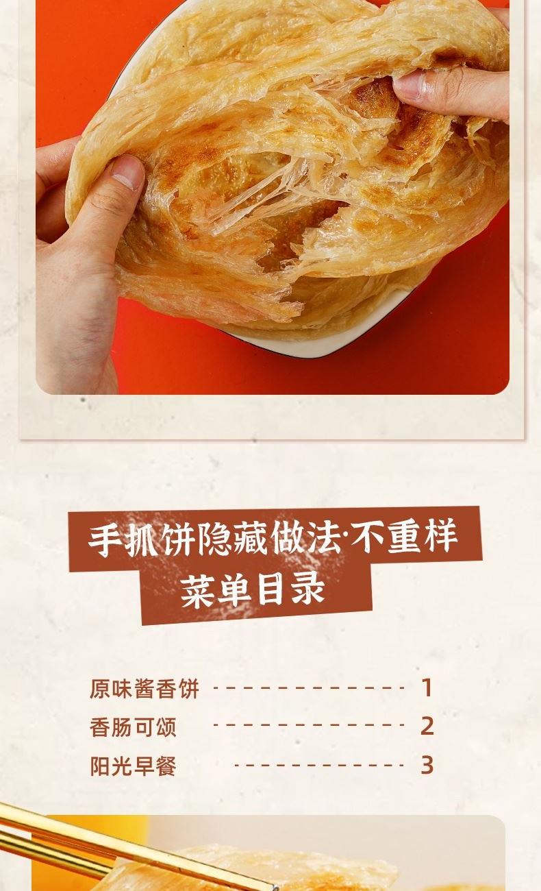 产品参数配置 508 烤肠:共 3 袋 手抓饼:900g / 袋,共 3 袋 小油条:100g / 袋,共 5 袋 产品卖点说明 多元组合,一站备齐:包含烤肠、手抓饼、小油条三类面点,覆盖早餐、简餐多种需求,一次采购满足多样饮食场景。 便捷速食,超值实用:成品面点加热即食,无需复杂操作,量大组合性价比高,适合家庭日常囤货。