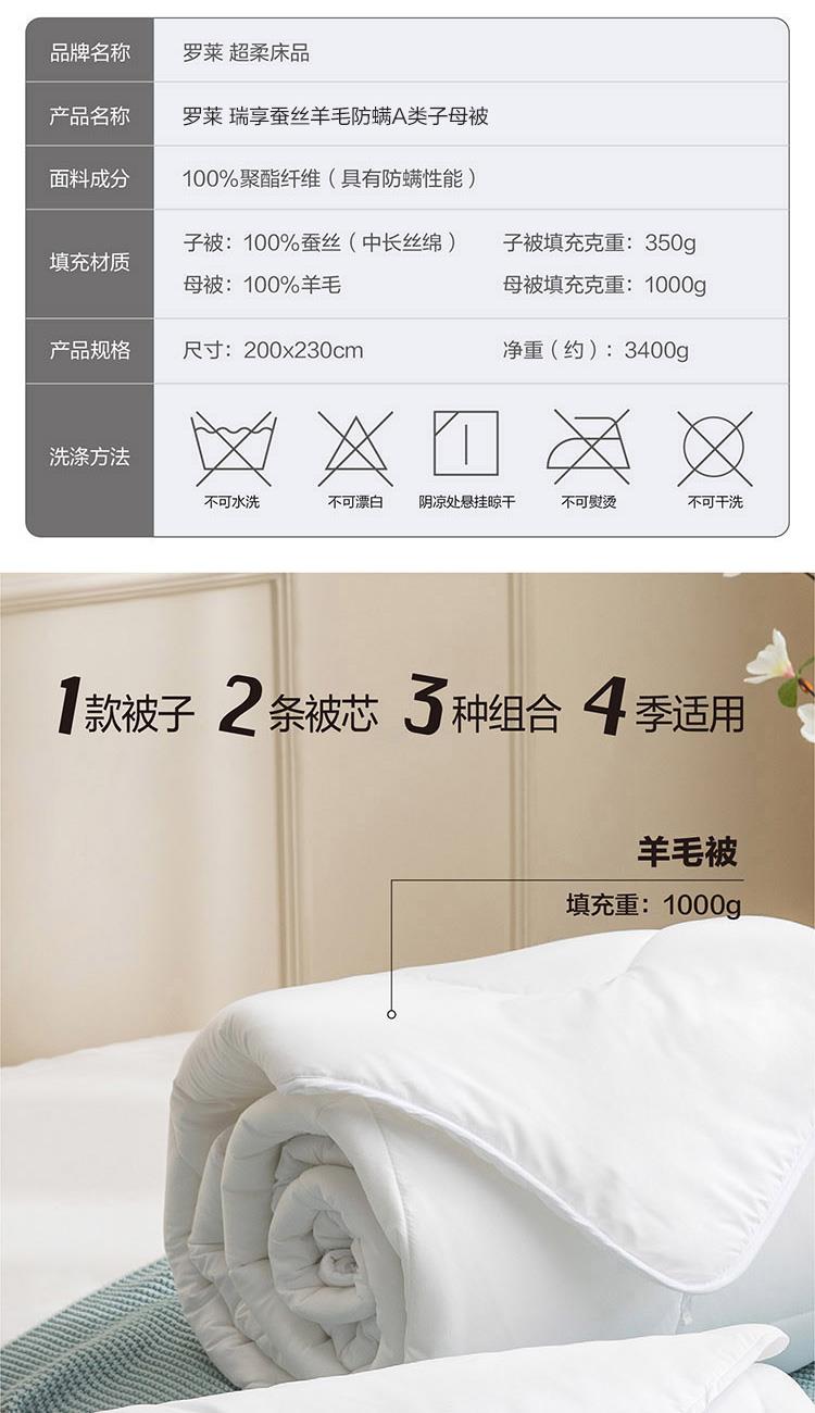 罗莱瑞享蚕丝羊毛A类防螨子母被200*230cm