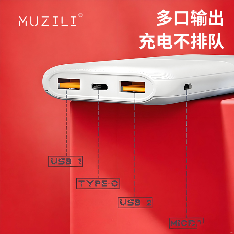 1万毫安电池容量,3C认证 LED电量显示 双USB接口同时充电 经典外观设计设计 符合民航局标准,可随身携带