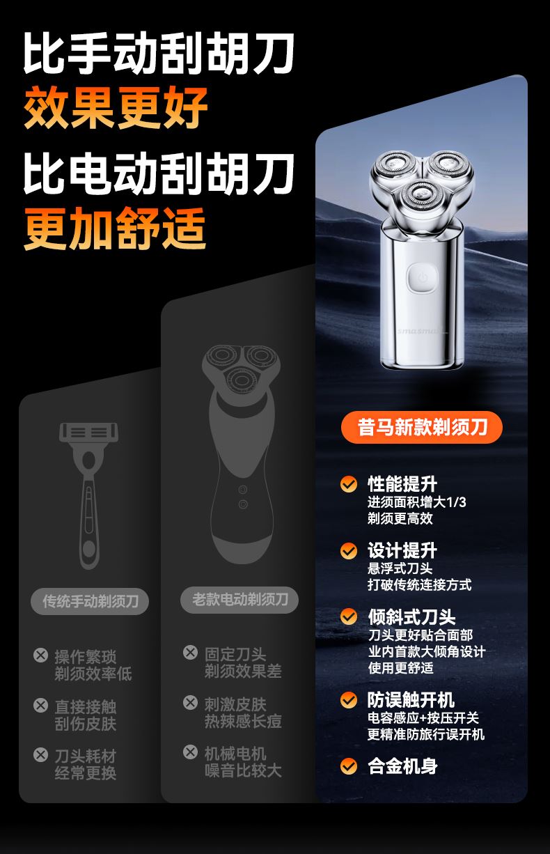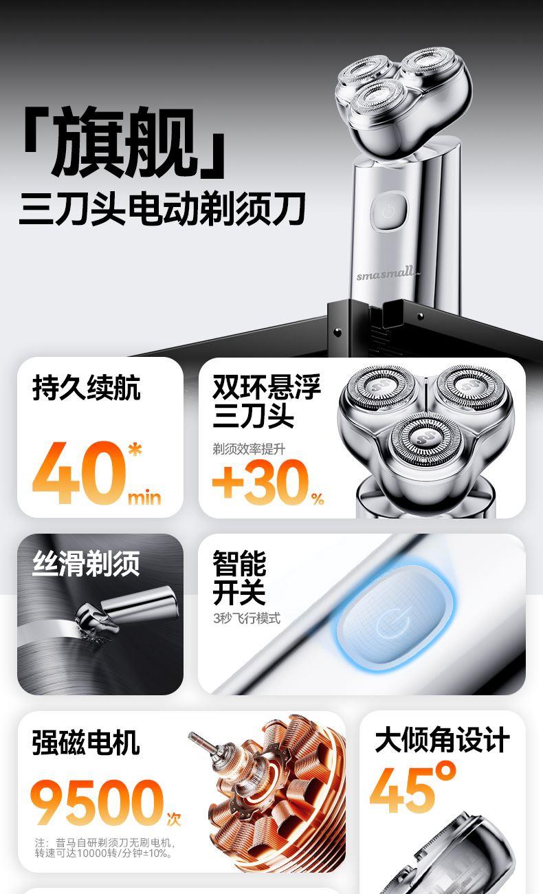 昔马小金刚三刀头电动剃须刀