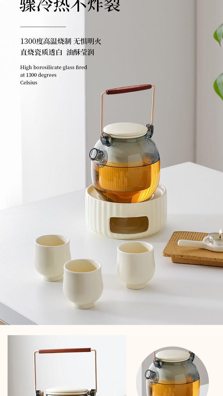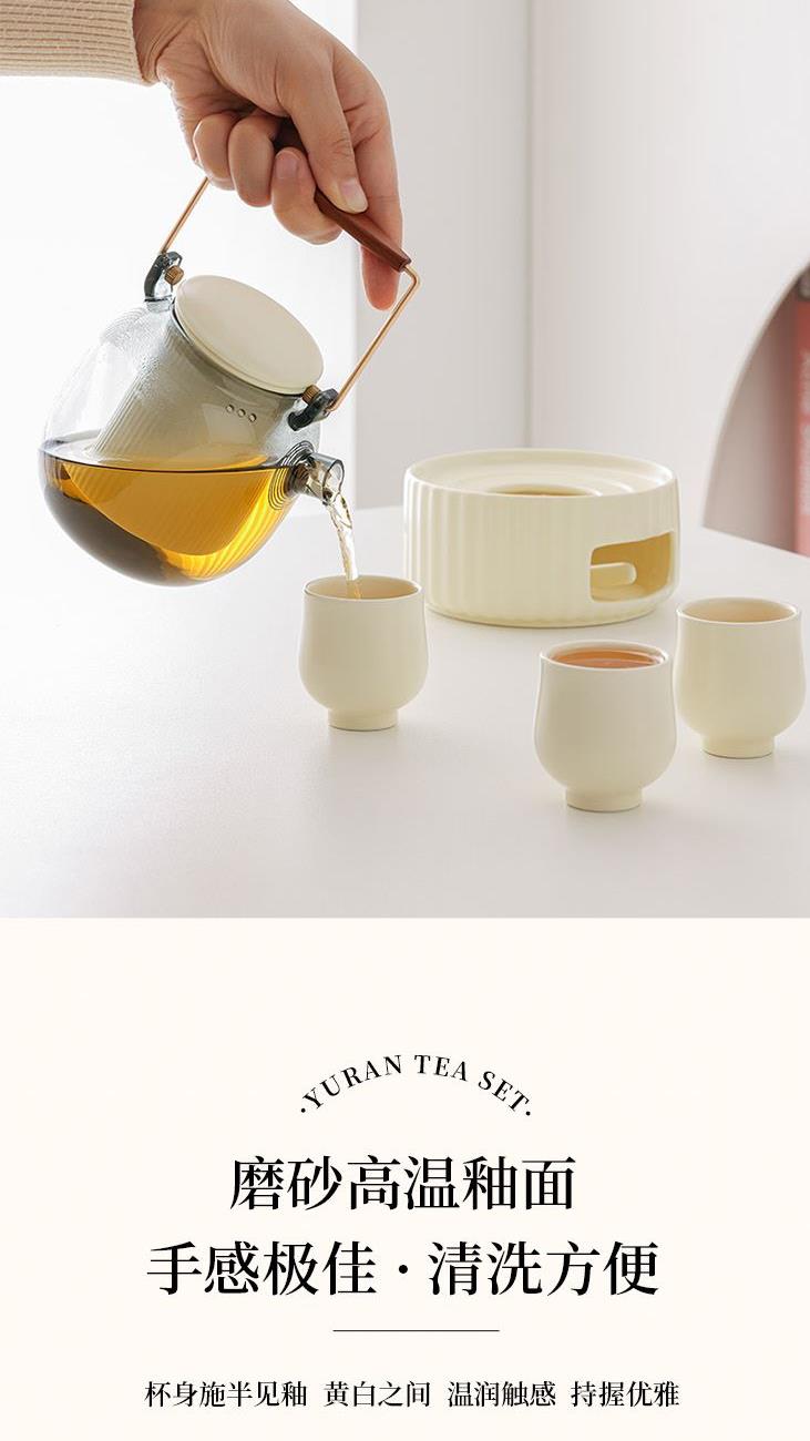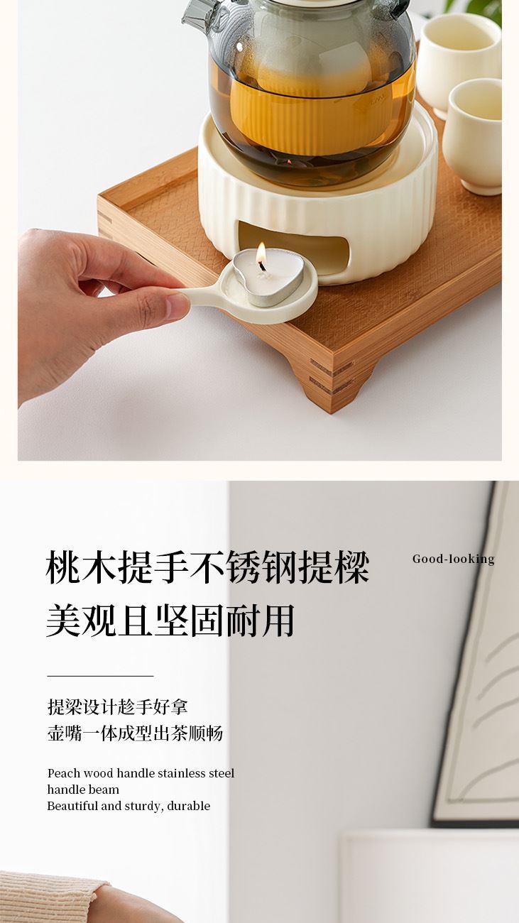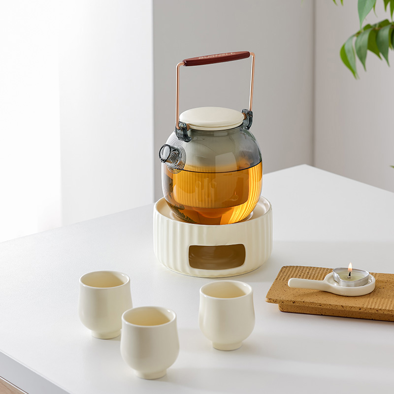 材 质:陶瓷+高硼硅 配 置:提梁壶*1;茶漏*1;底座*1; 蜡托*1;杯子*3 规 格:玻璃壶600ml;杯子75ml 颜 色:米黄色 装 箱 数:6pcs/箱