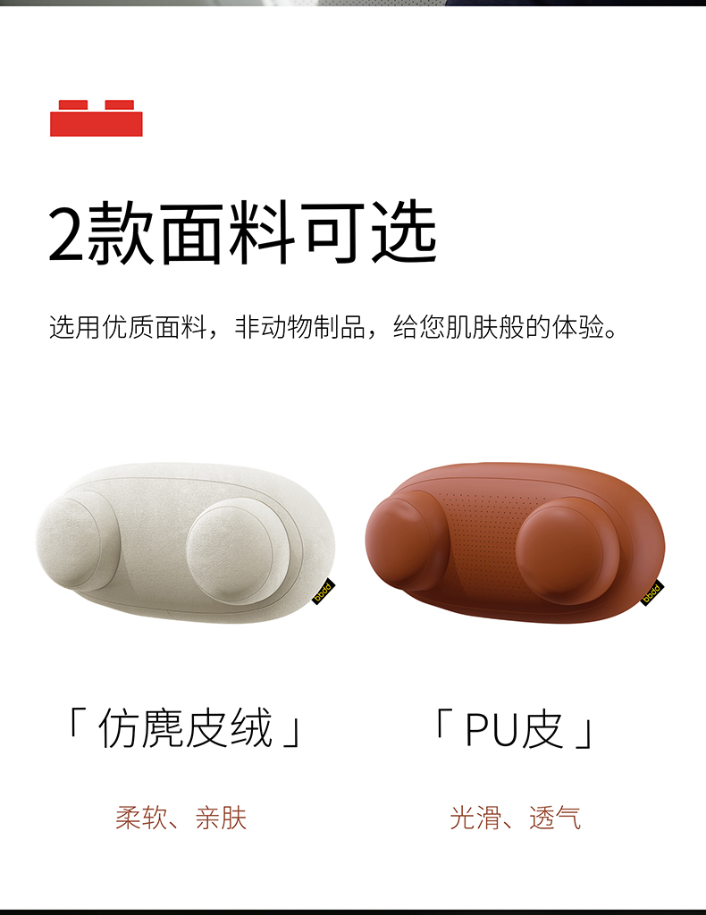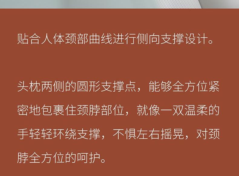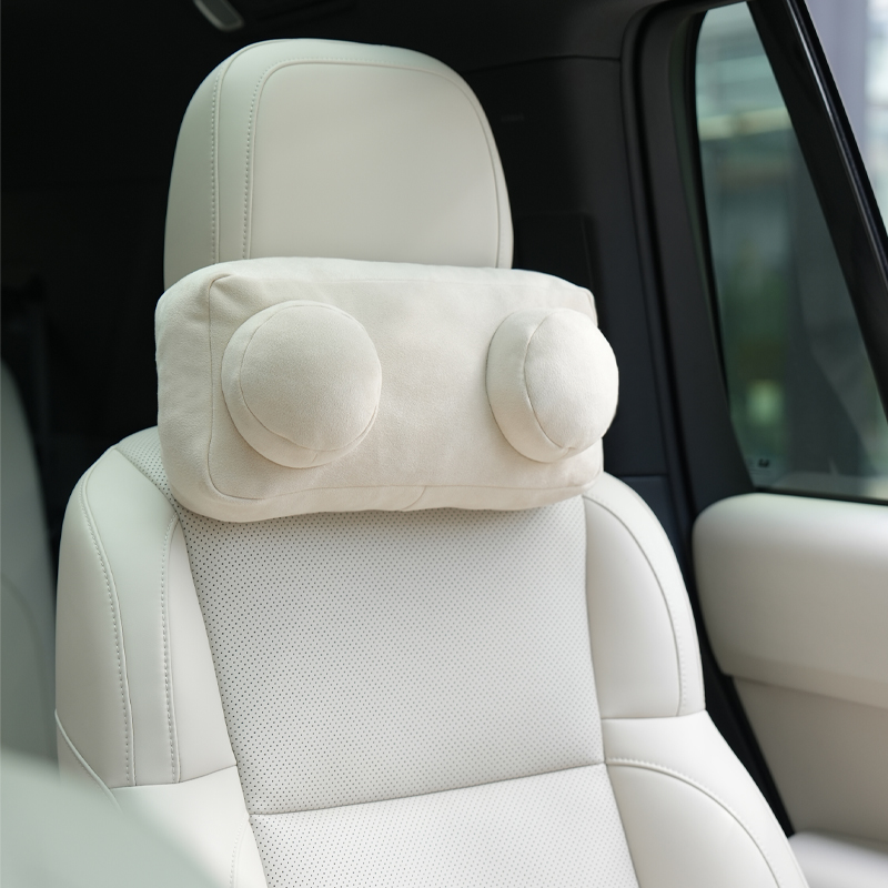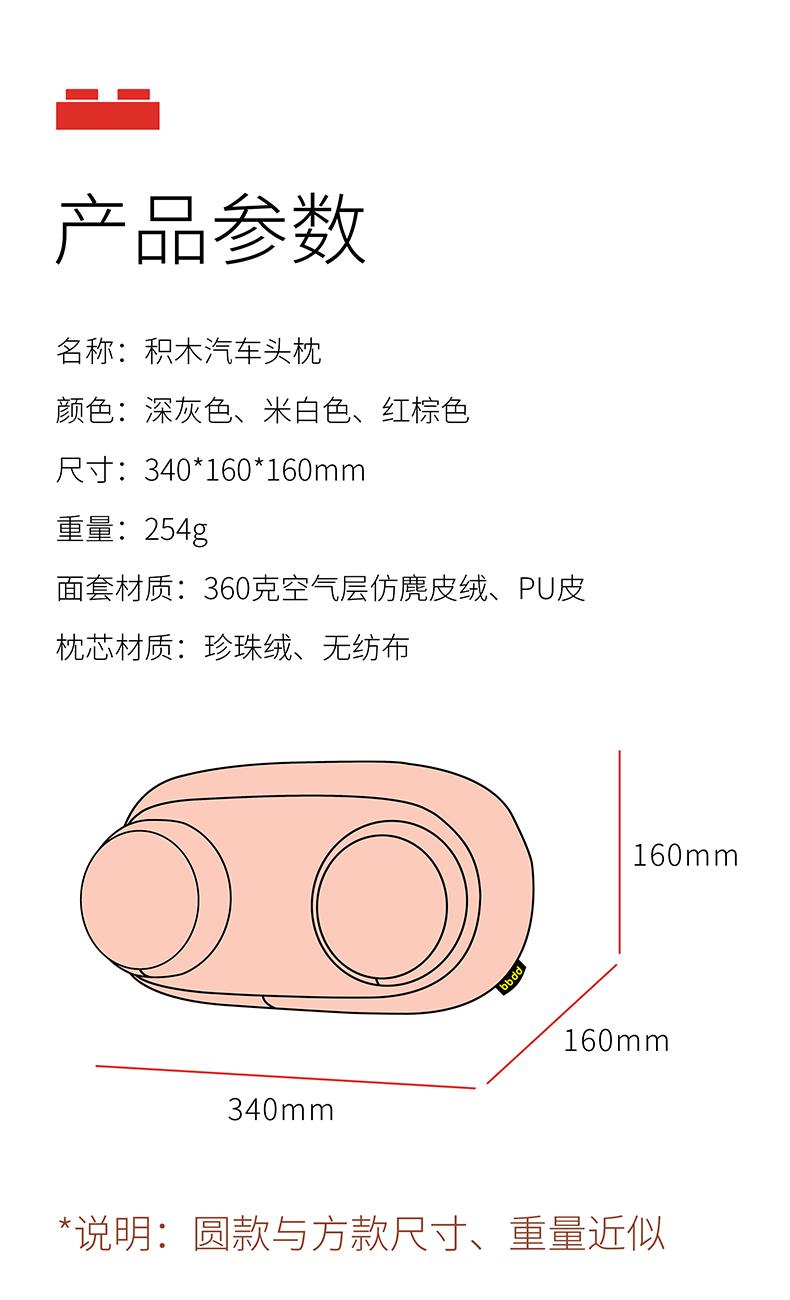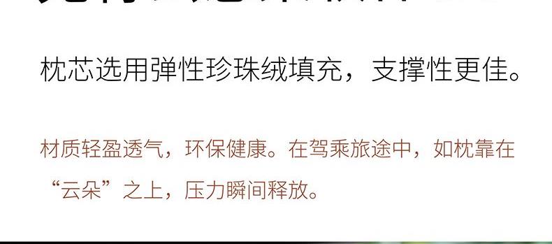 产品尺寸:340*160*160MM 产品重量:250G 产品颜色:黑色、米白色、棕色 产品材质:仿麂皮布套+珍珠绒枕芯、PU皮 产品卖点:固定颈部、通过填补头部、颈部与座椅之间的空隙点,平均分布受力,减少震感。精选细线,精湛缝纫工艺,走线工整细腻耐磨耐用。